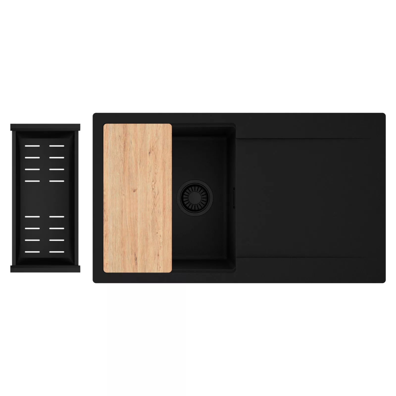 HD Onyx 86 egymedencés mosogatótálca szett, vágódeszkával és csepegtetőkosárral, matt fekete
