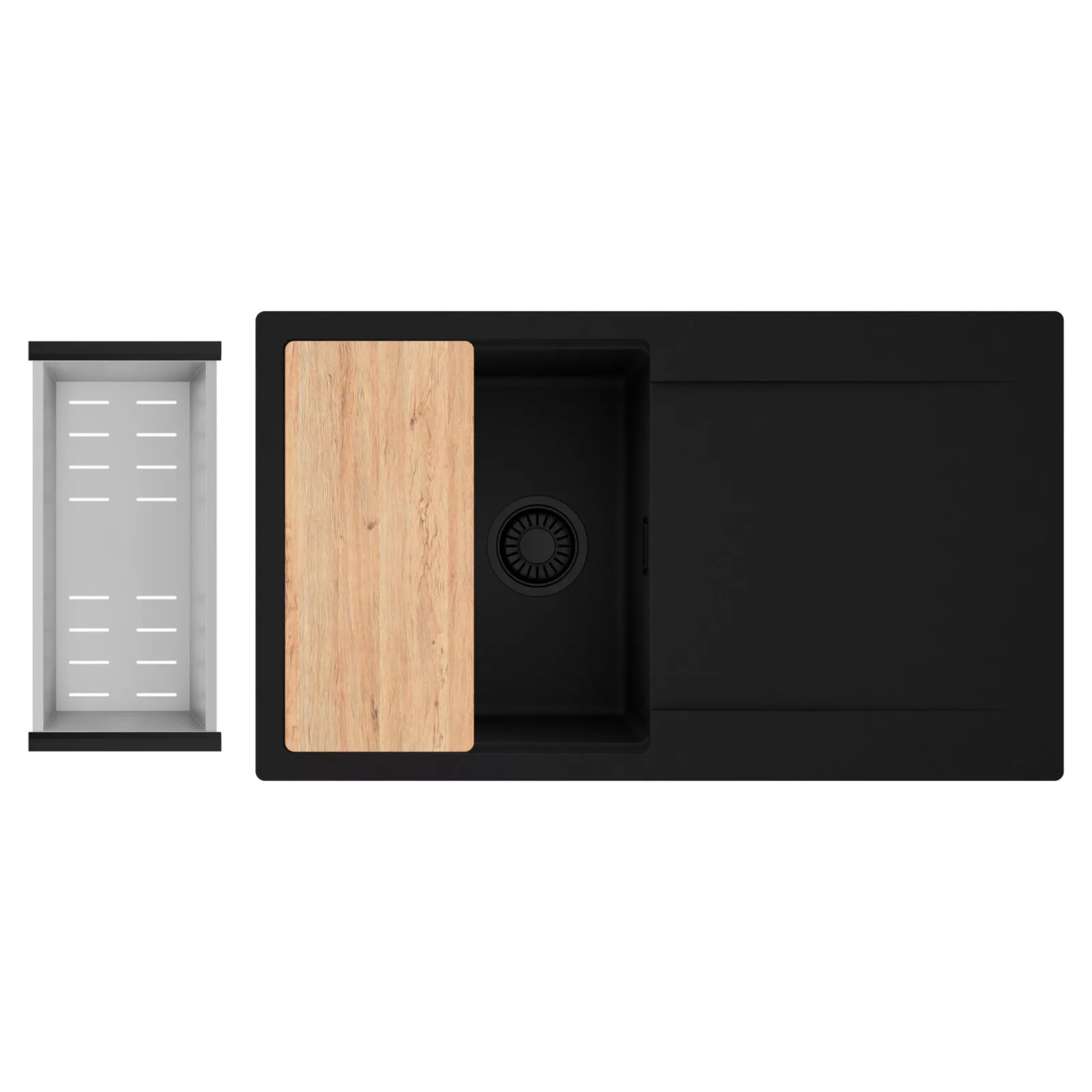 HD Onyx 86 egymedencés mosogatótálca szett, vágódeszkával és csepegtetőkosárral, matt fekete