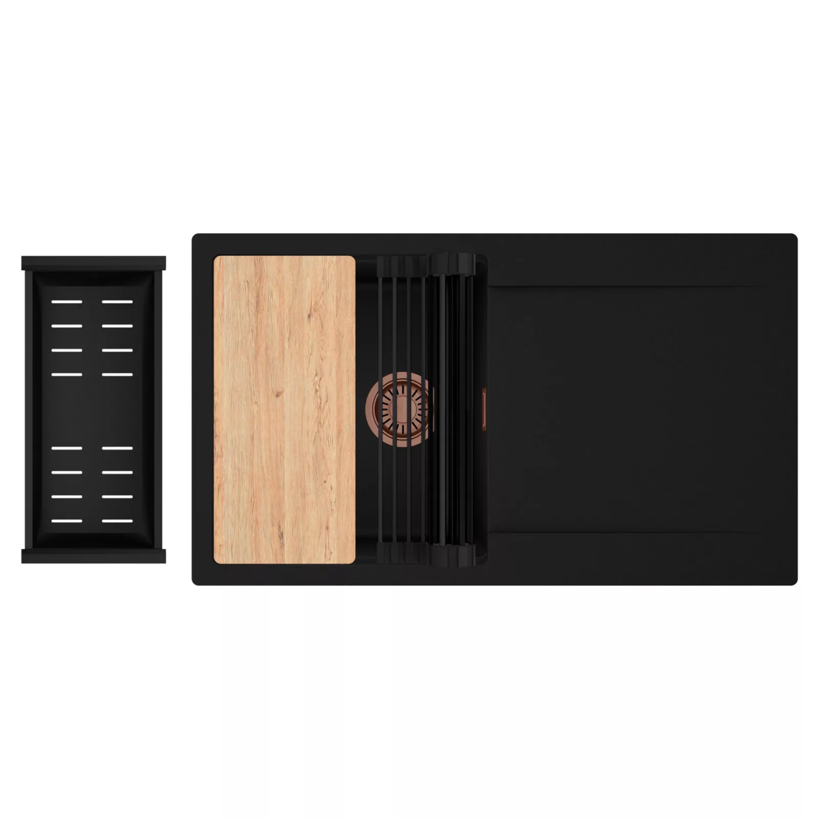 HD Onyx 86 egymedencés mosogatótálca szett, vágódeszkával, csepegtetőráccsal és kosárral, matt fekete