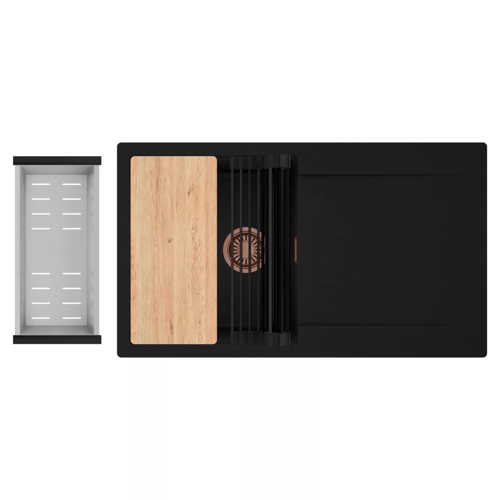 HD Onyx 86 egymedencés mosogatótálca szett, vágódeszkával, csepegtetőráccsal és kosárral, matt fekete
