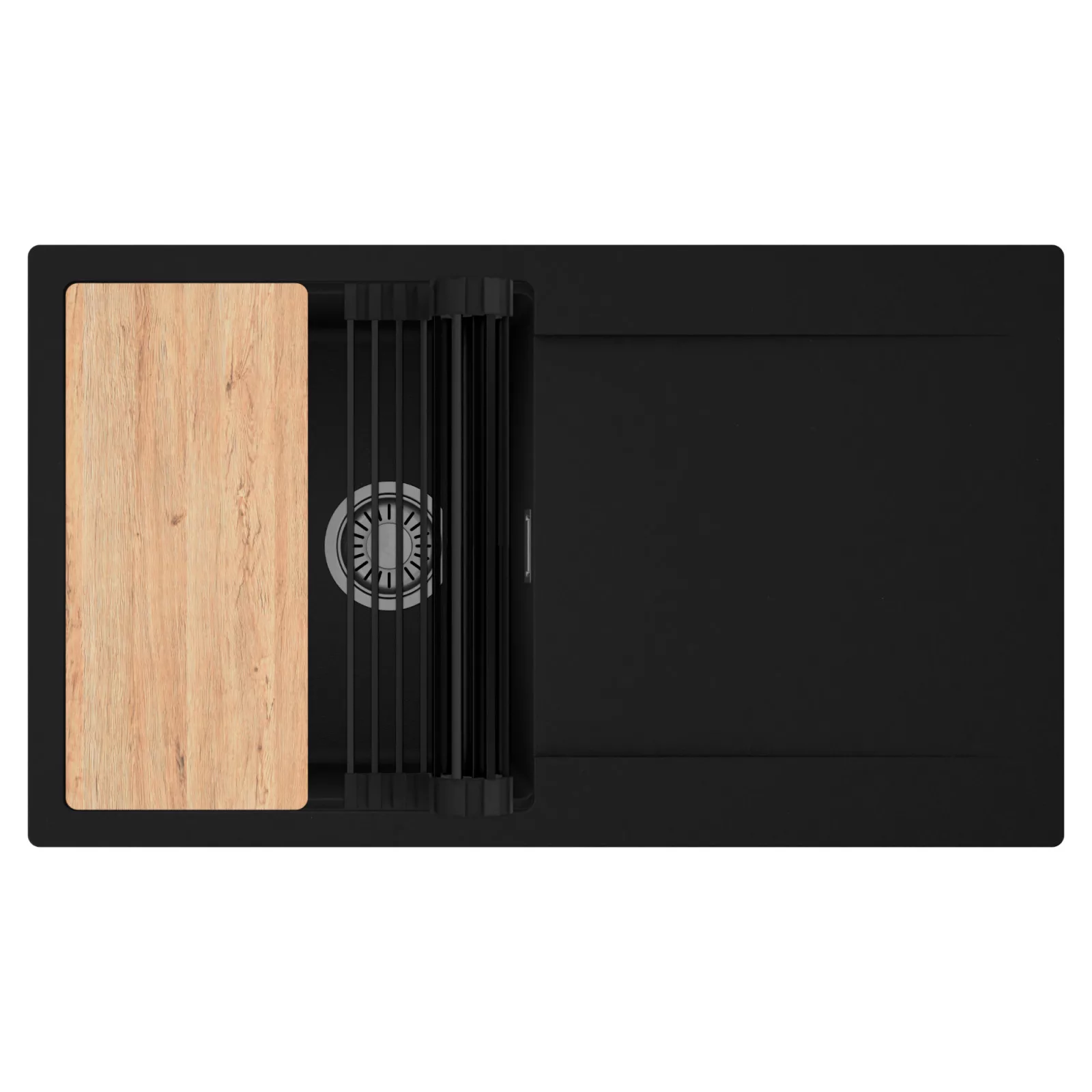 HD Onyx 86 egymedencés mosogatótálca szett, vágódeszkával és csepegtetőráccsal, matt fekete