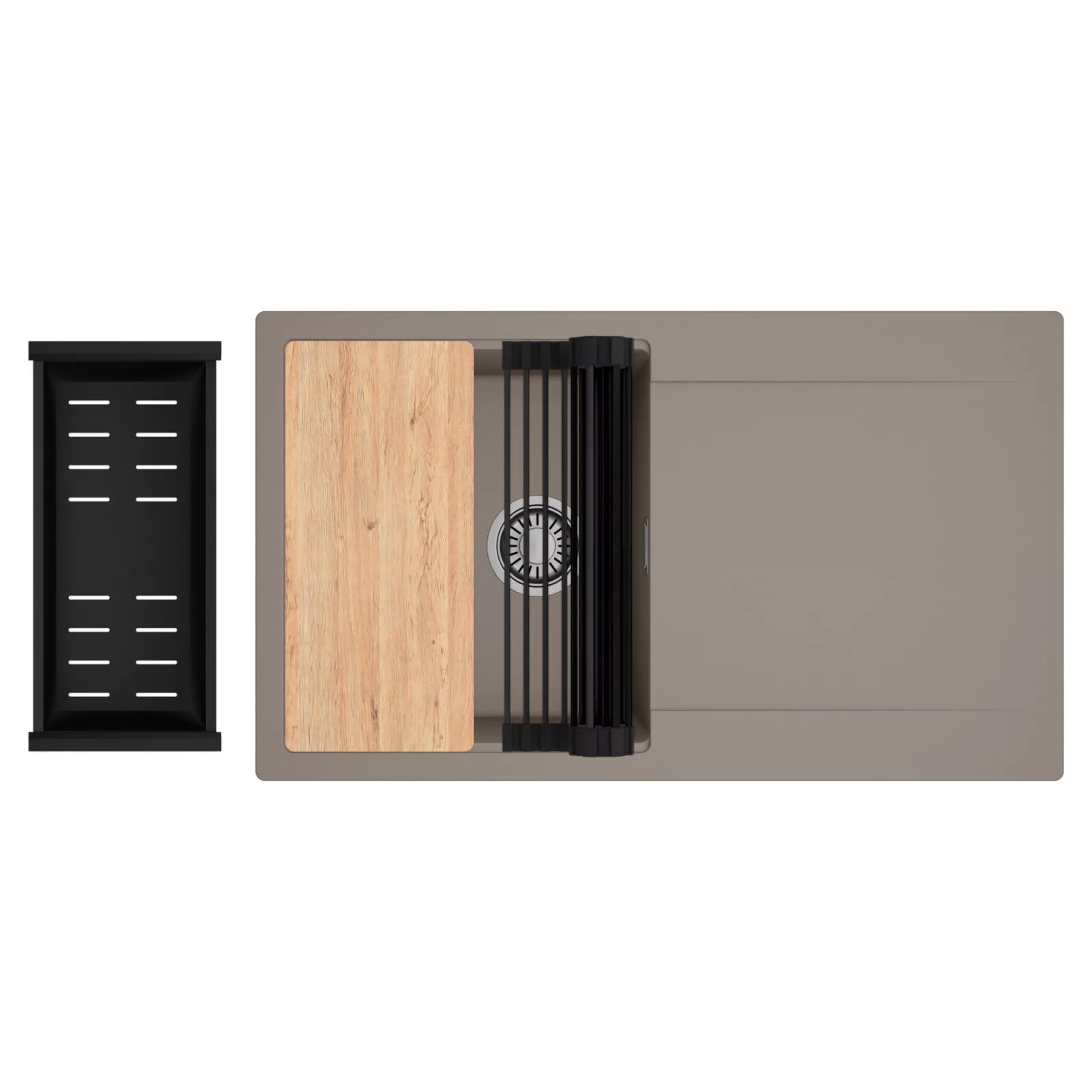 HD Onyx Tortora 86 egymedencés mosogatótálca szett, vágódeszkával, csepegtetőráccsal és kosárral, tortora