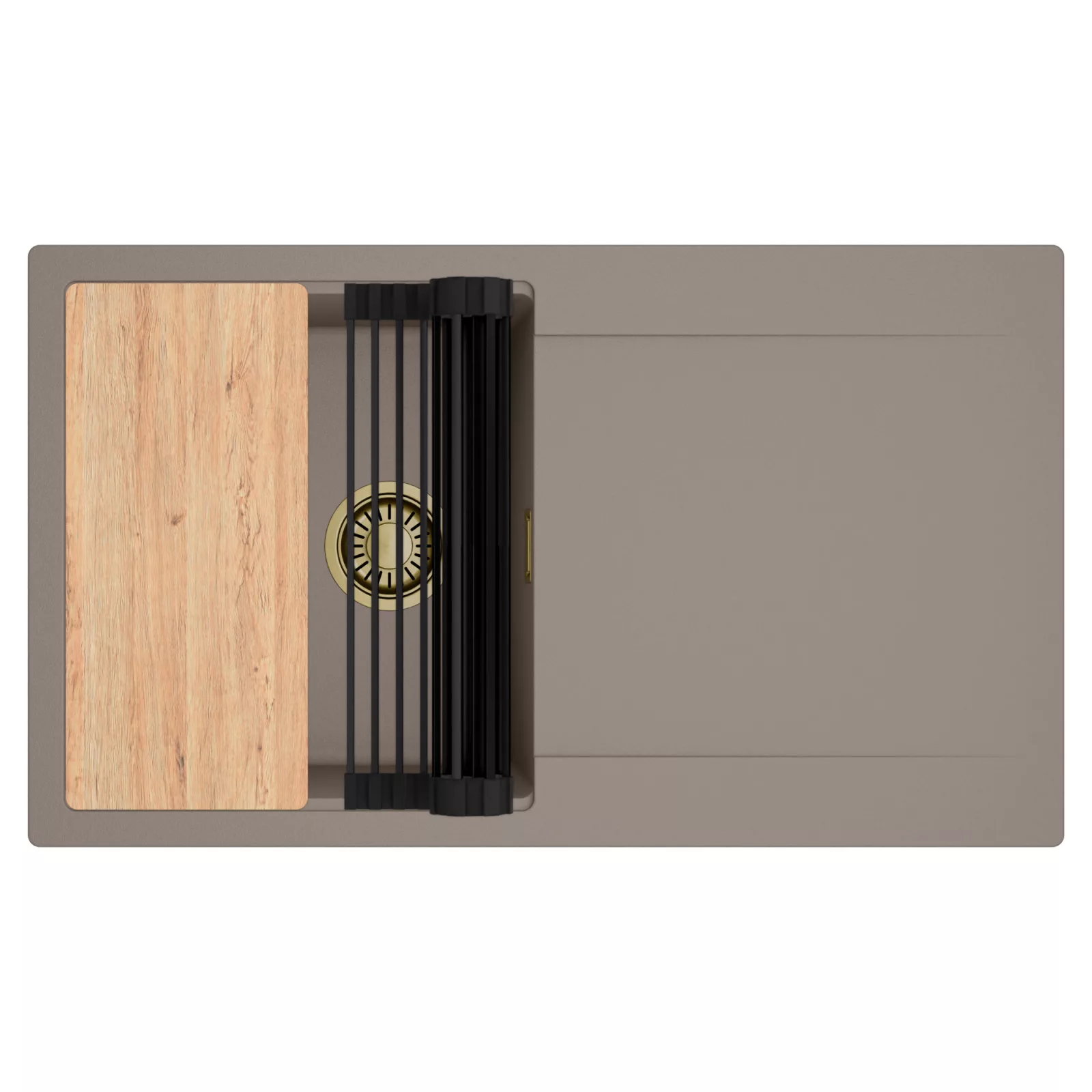 HD Onyx Tortora 86 egymedencés mosogatótálca szett, vágódeszkával és csepegtetőráccsal, tortora
