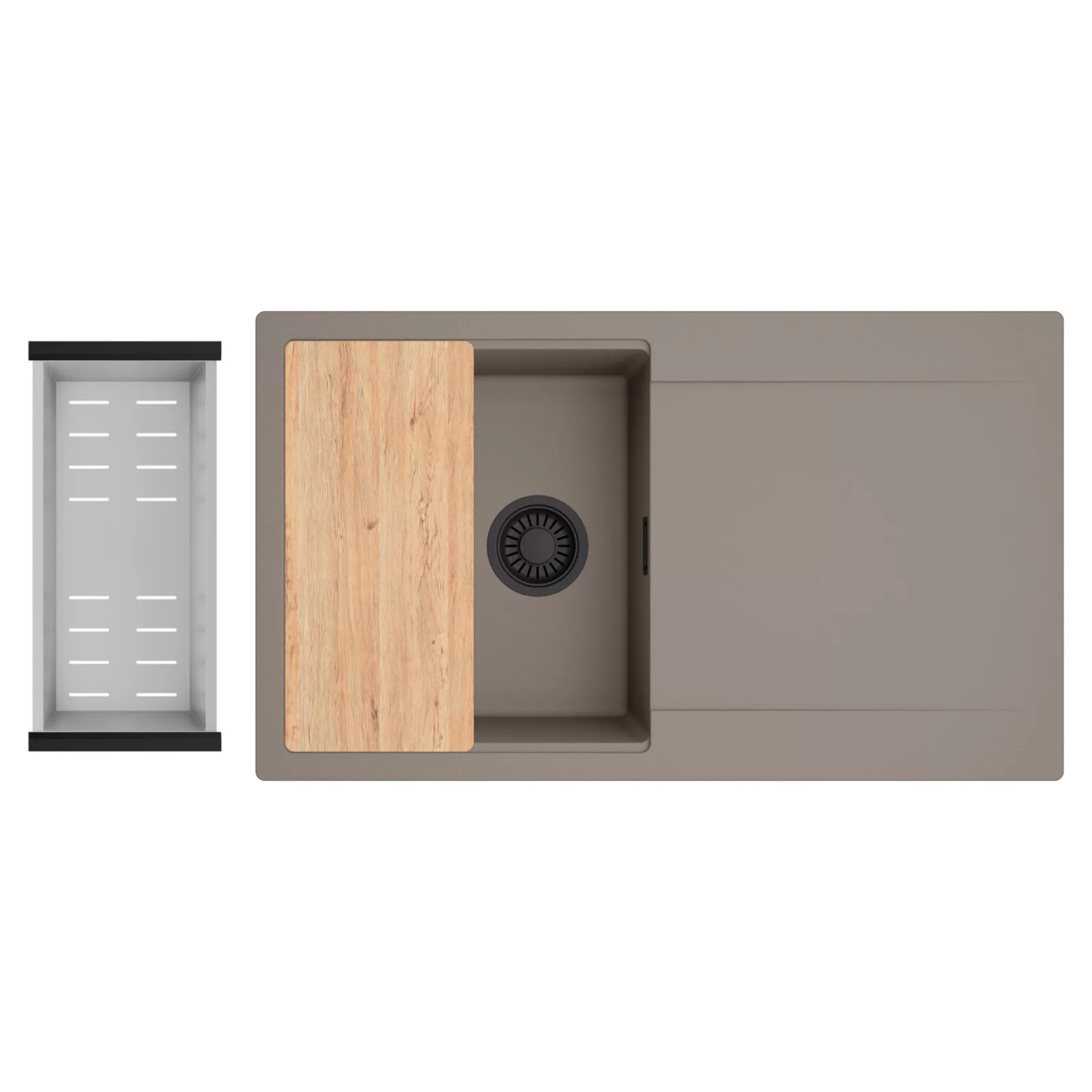 HD Onyx Tortora 86 egymedencés mosogatótálca szett, vágódeszkával és csepegtetőkosárral, tortora