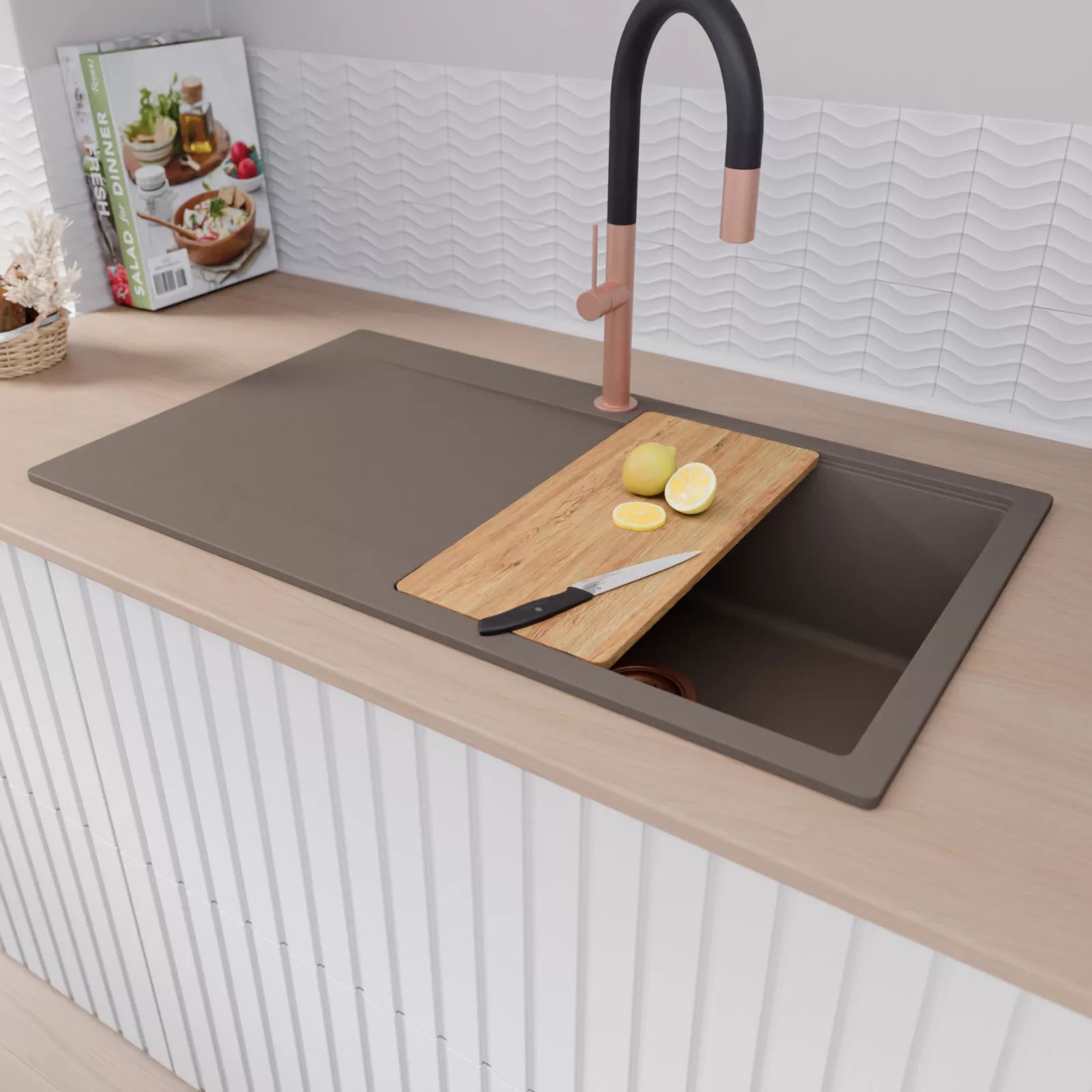Egy perem. Több funkció. Teljes értékű konyhai tér egyetlen mosogatótálcával.