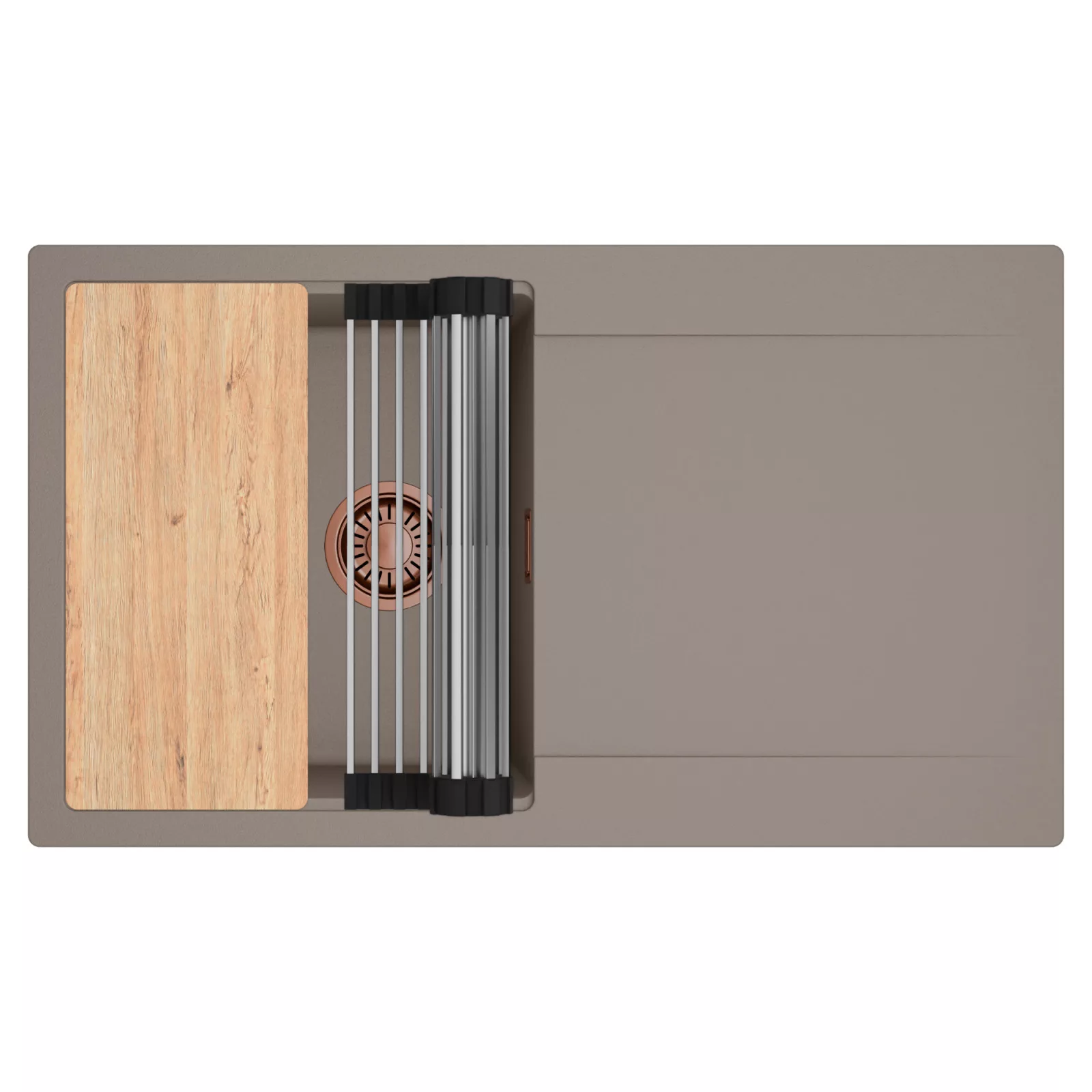 HD Onyx Tortora 86 egymedencés mosogatótálca szett, vágódeszkával és csepegtetőráccsal, tortora
