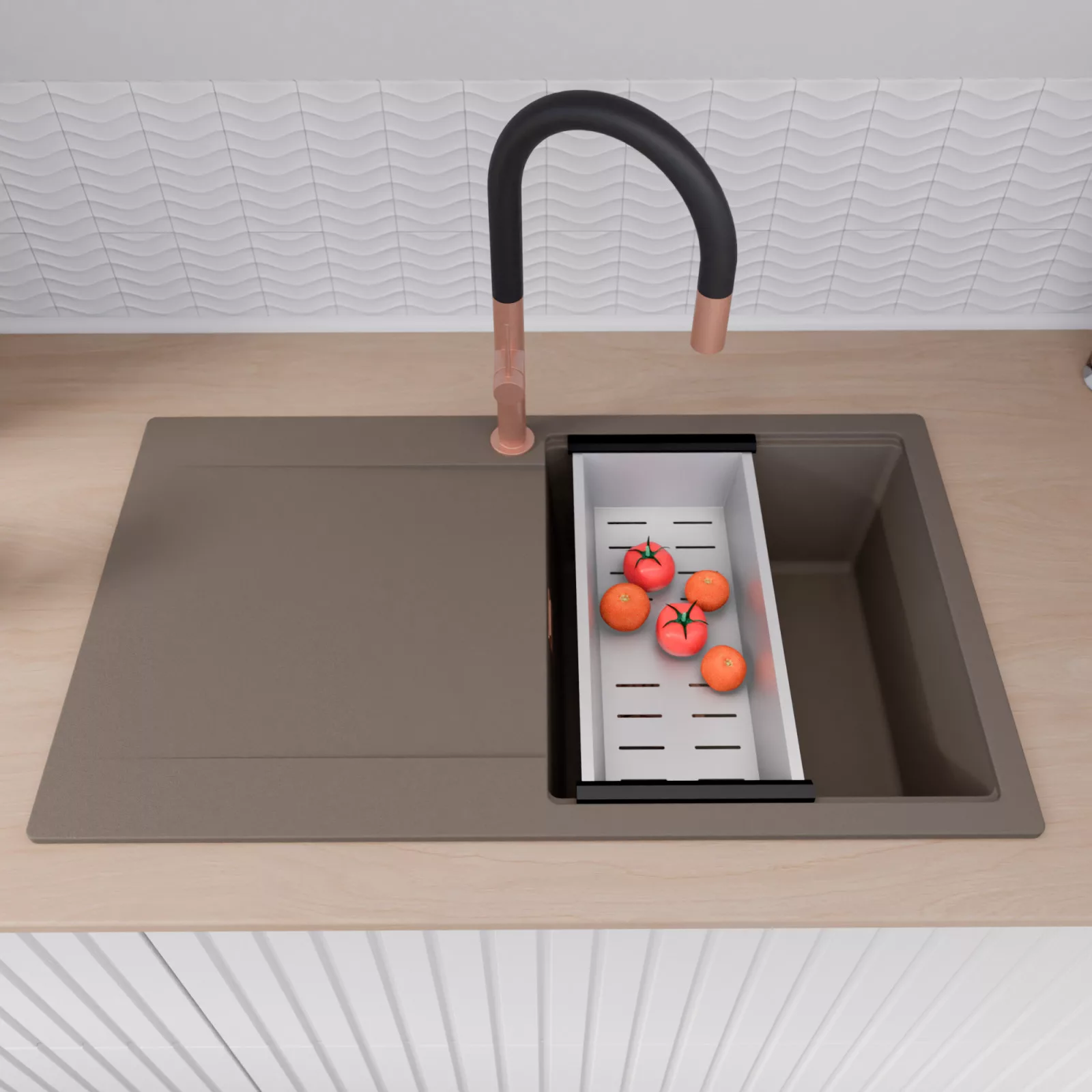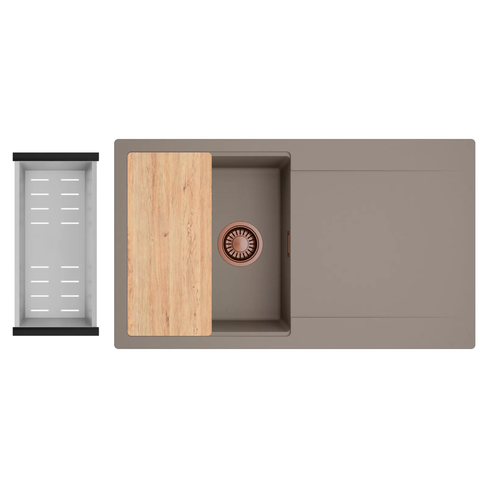 HD Onyx Tortora 86 egymedencés mosogatótálca szett, vágódeszkával és csepegtetőkosárral, tortora