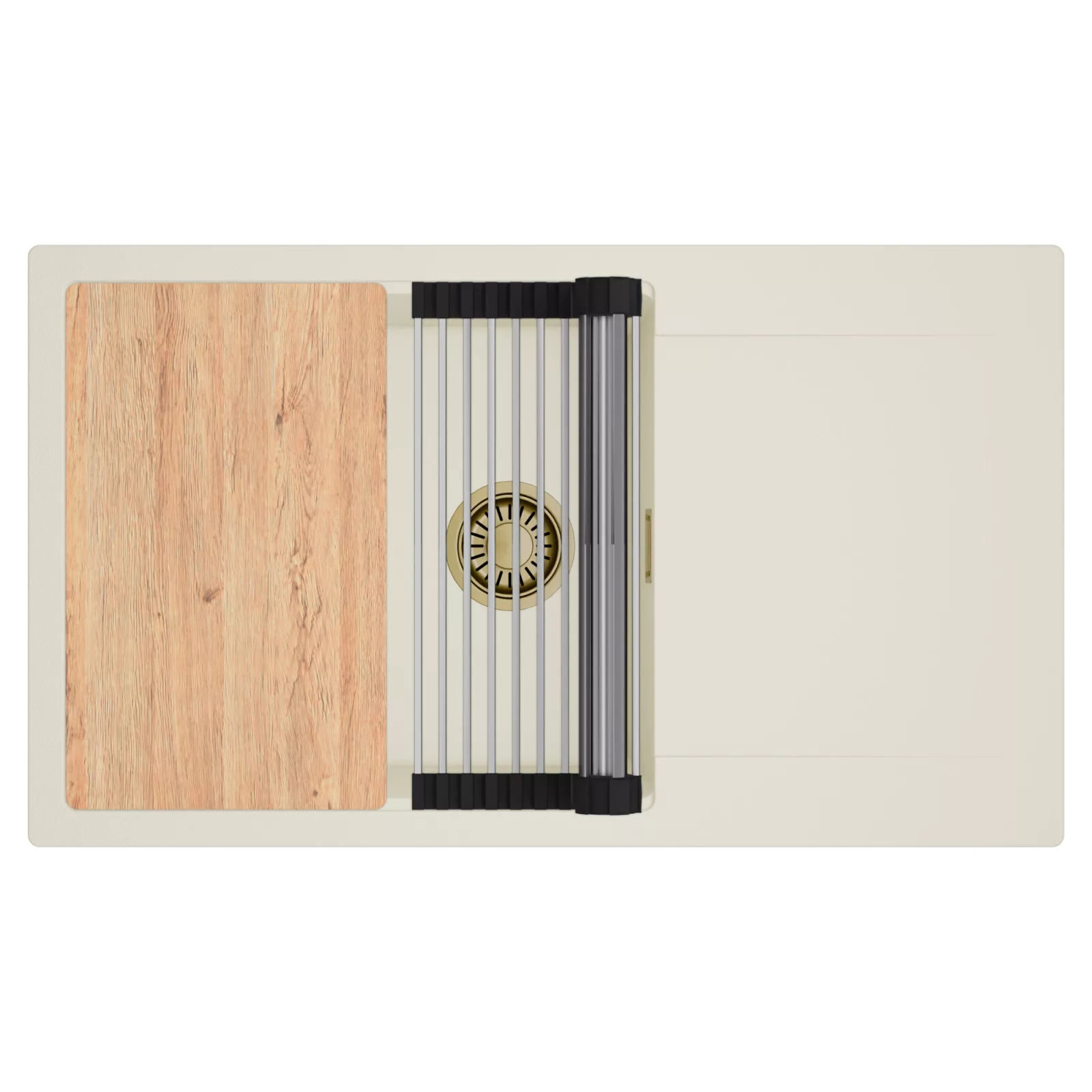 HD Onyx White 86-XL egymedencés mosogatótálca szett, vágódeszkával és csepegtetőráccsal, tört fehér