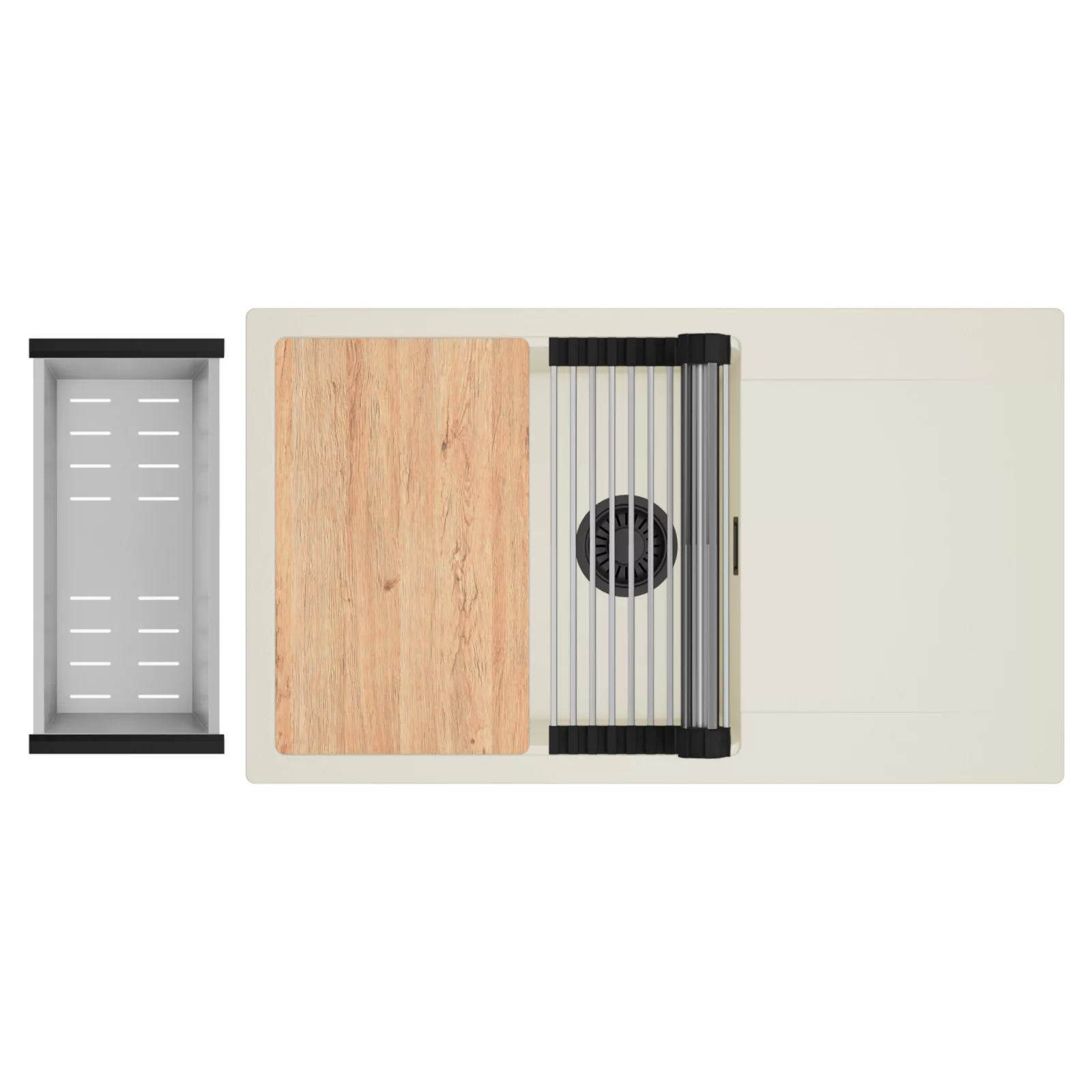 HD Onyx White 86-XL egymedencés mosogatótálca szett, vágódeszkával, csepegtetőráccsal és kosárral, tört fehér
