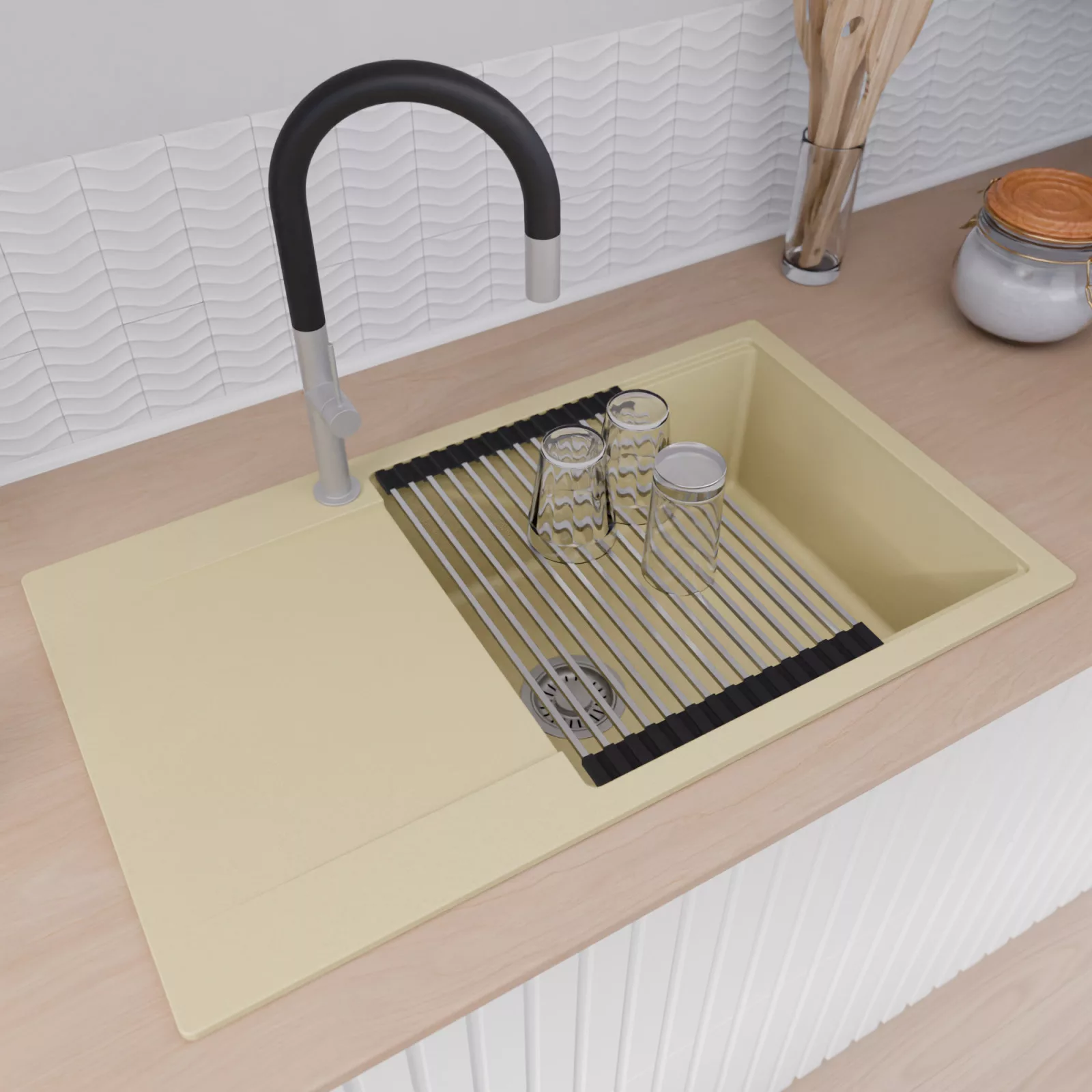 HD Onyx Beige 86-XL egymedencés mosogatótálca szett, vágódeszkával, csepegtetőráccsal és kosárral, soft bézs
