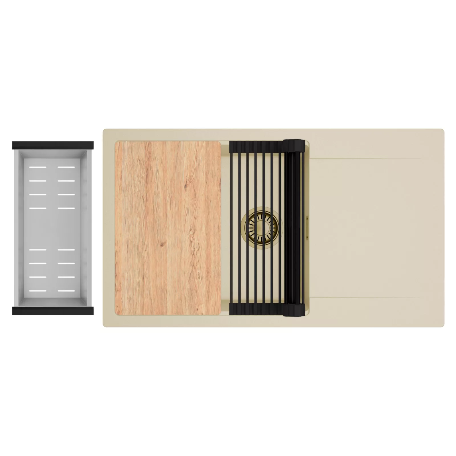 HD Onyx Beige 86-XL egymedencés mosogatótálca szett, vágódeszkával, csepegtetőráccsal és kosárral, soft bézs