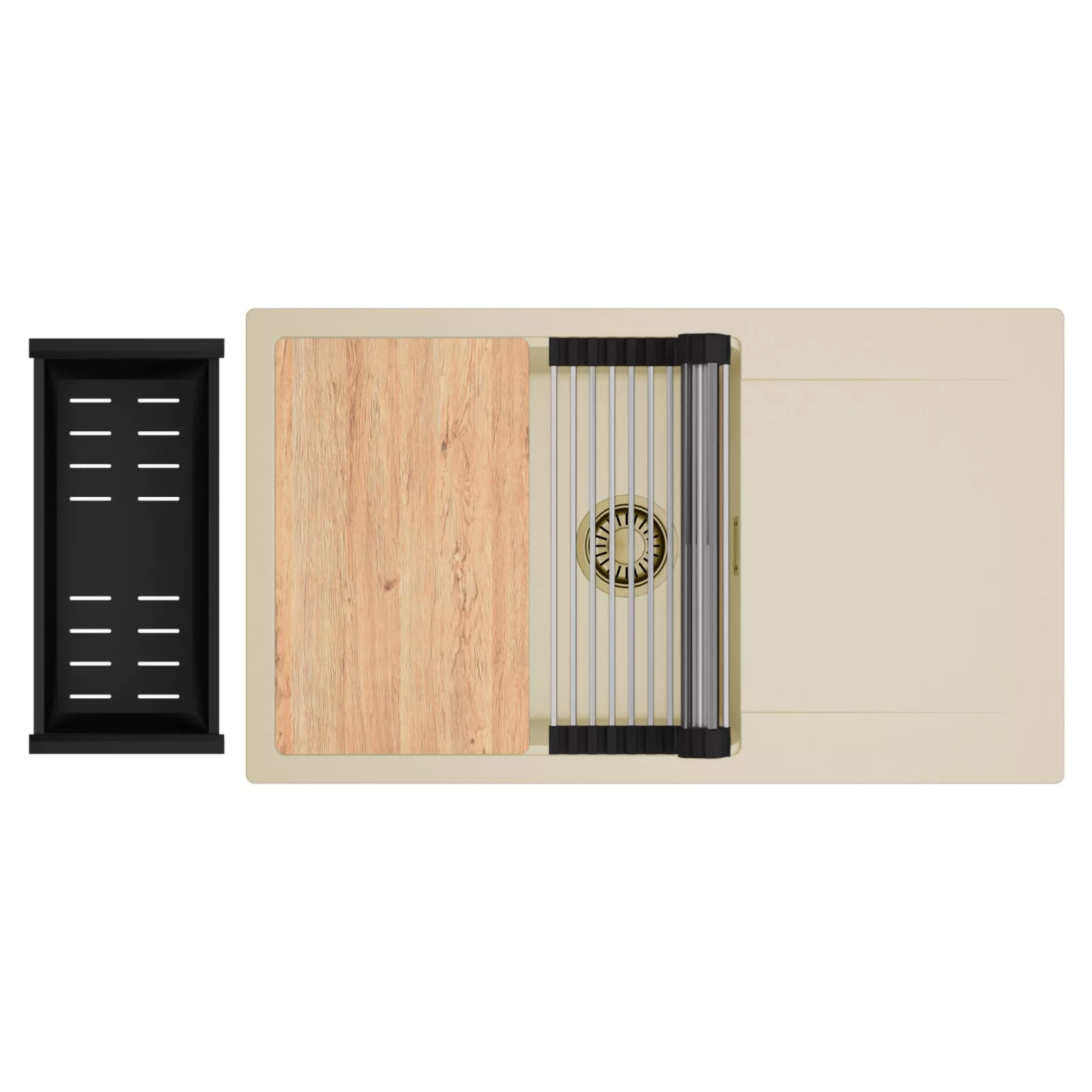 HD Onyx Beige 86-XL egymedencés mosogatótálca szett, vágódeszkával, csepegtetőráccsal és kosárral, soft bézs
