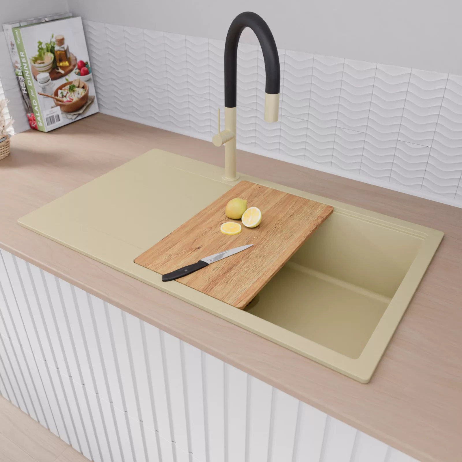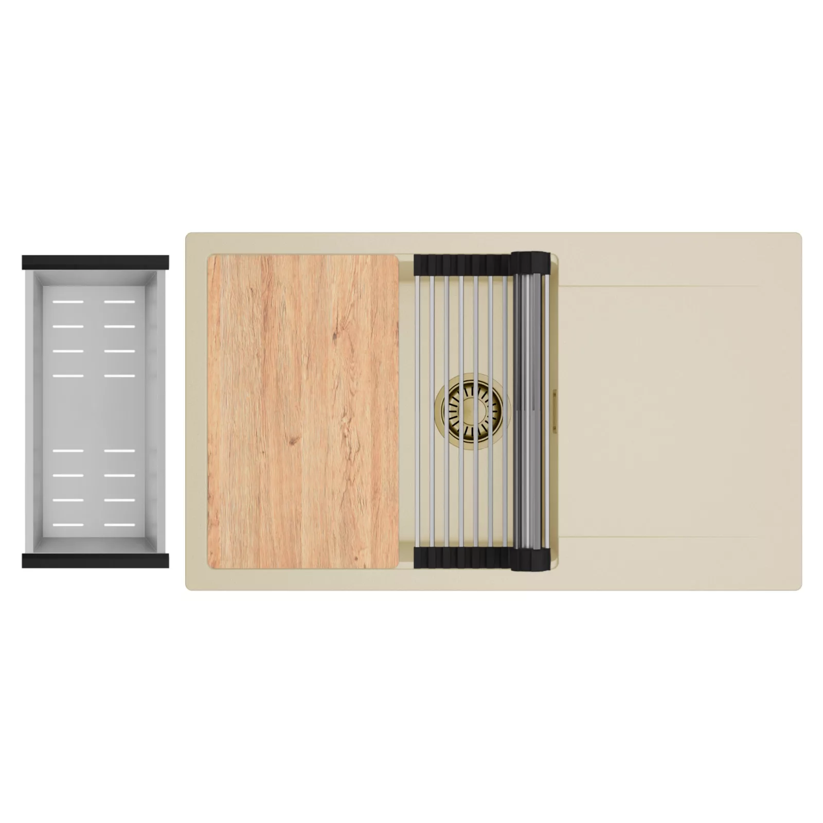 HD Onyx Beige 86-XL egymedencés mosogatótálca szett, vágódeszkával, csepegtetőráccsal és kosárral, soft bézs