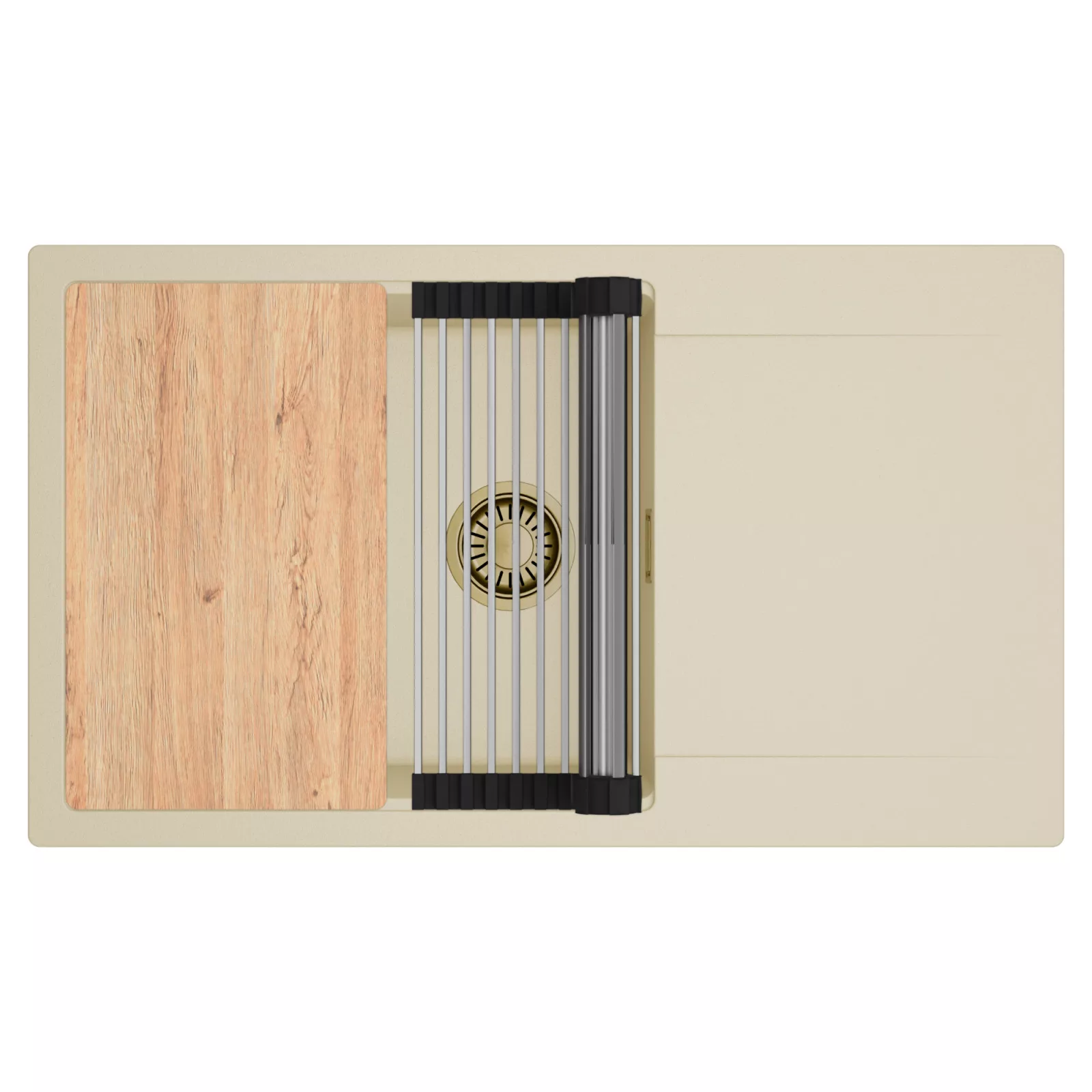HD Onyx Beige 86-XL egymedencés mosogatótálca szett, vágódeszkával és csepegtetőráccsal, soft bézs