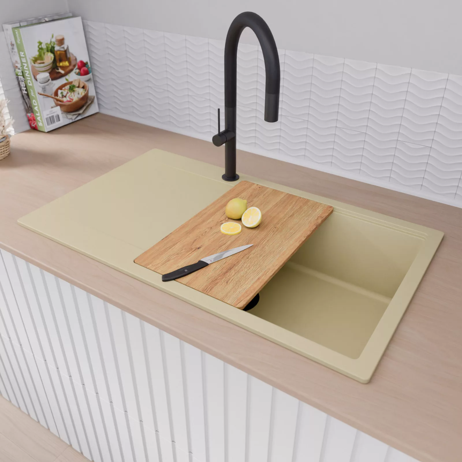 HD Onyx Beige 86-XL egymedencés mosogatótálca szett, vágódeszkával és csepegtetőráccsal, soft bézs