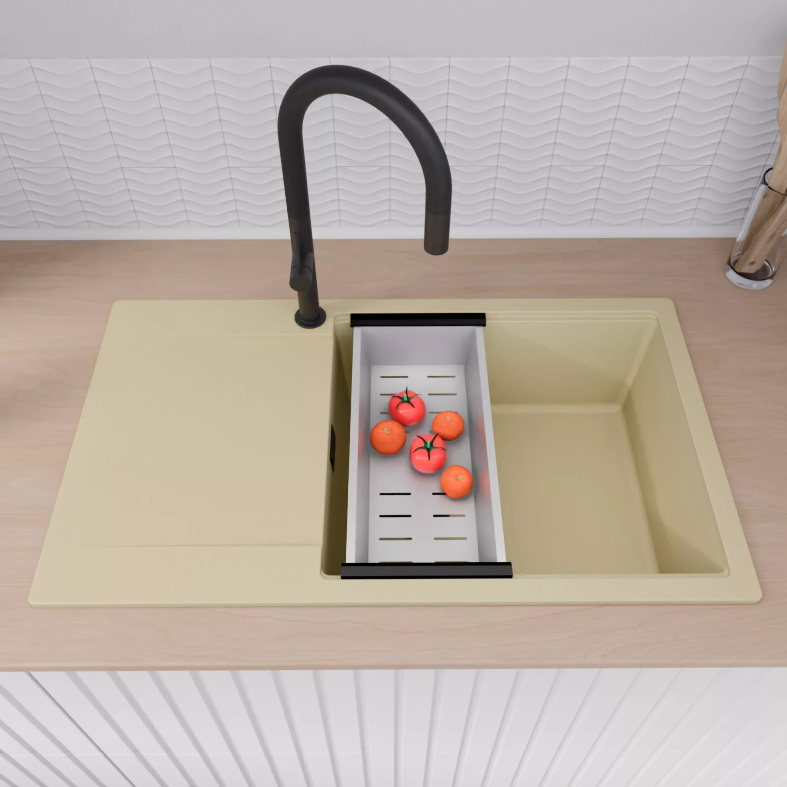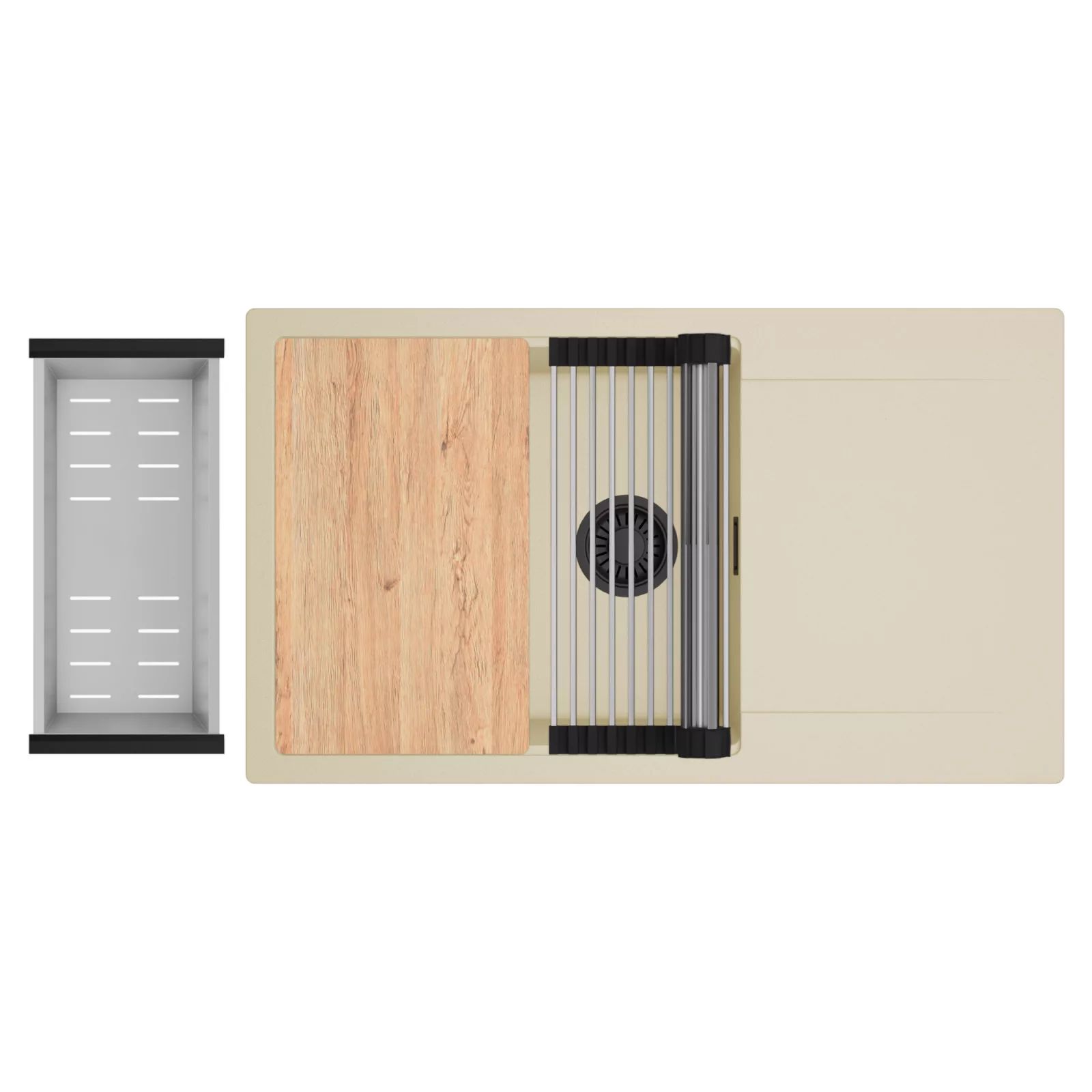 HD Onyx Beige 86-XL egymedencés mosogatótálca szett, vágódeszkával, csepegtetőráccsal és kosárral, soft bézs