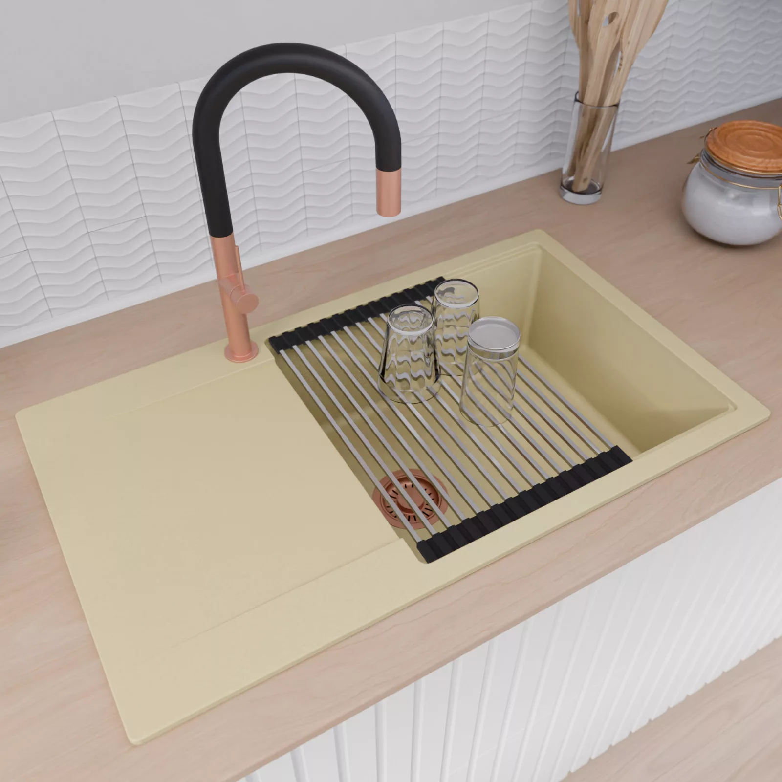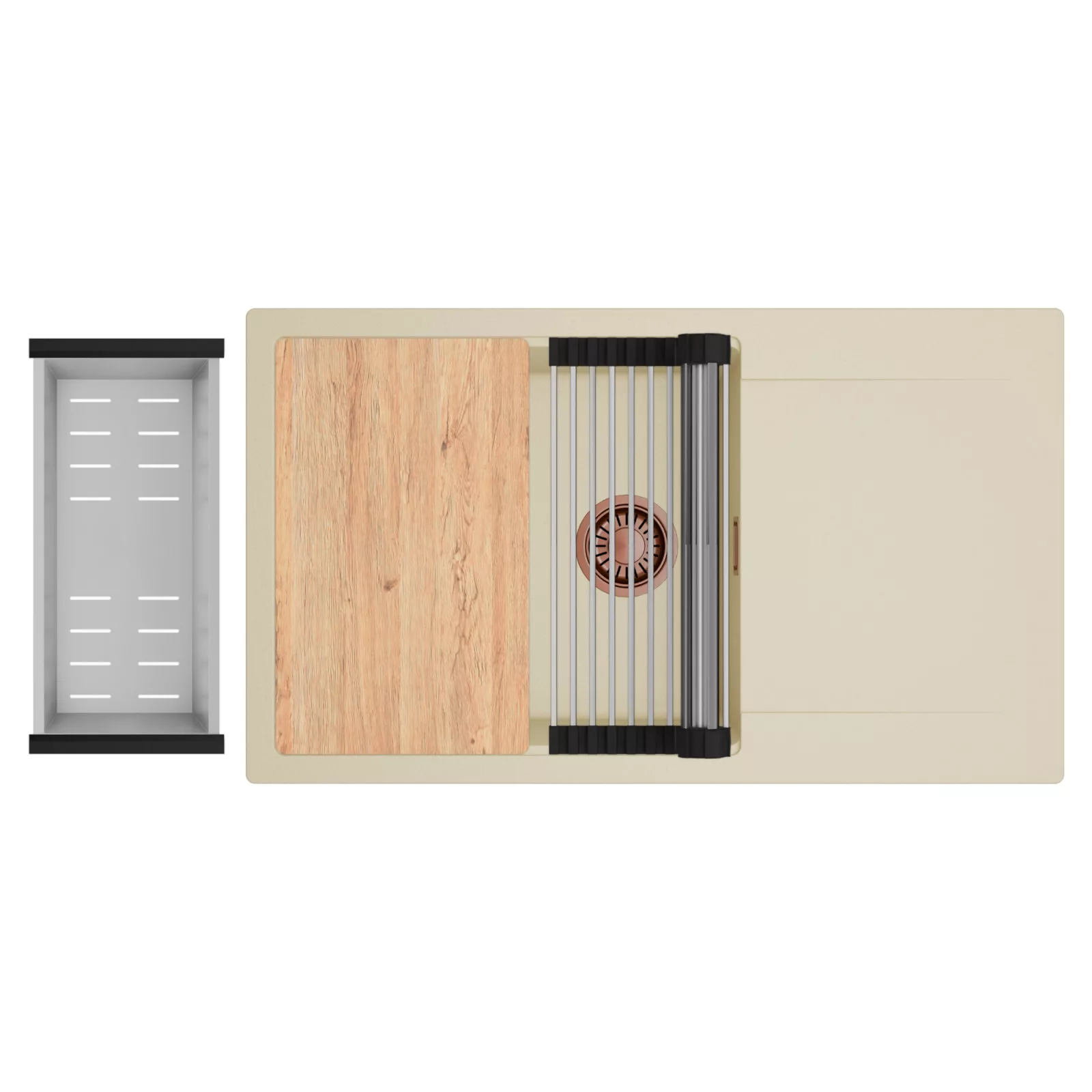 HD Onyx Beige 86-XL egymedencés mosogatótálca szett, vágódeszkával, csepegtetőráccsal és kosárral, soft bézs
