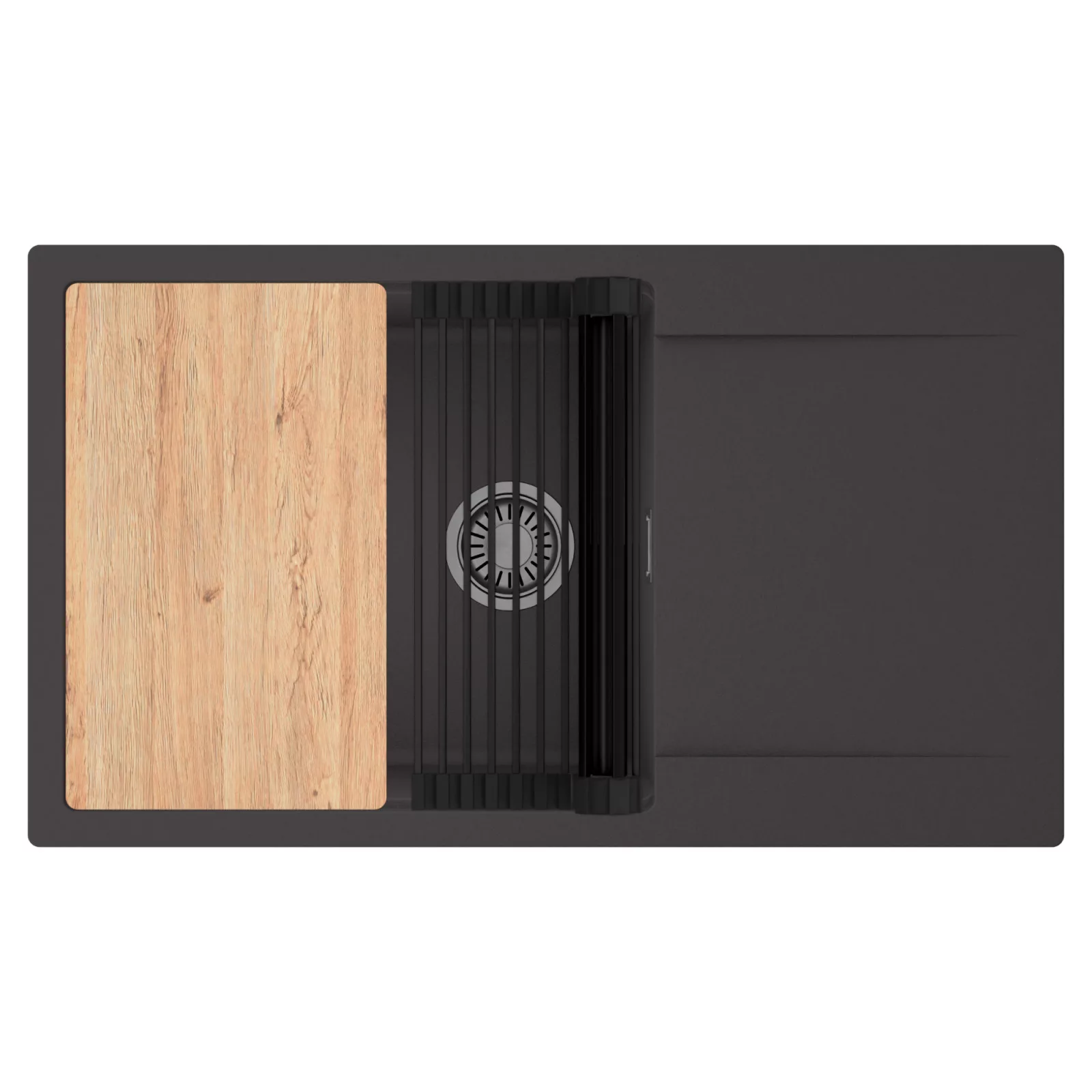 HD Onyx 86-XL egymedencés mosogatótálca szett, vágódeszkával és csepegtetőráccsal, matt antracit