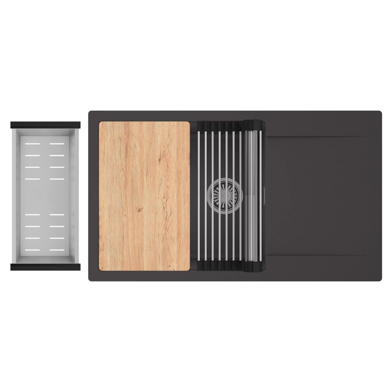 HD Onyx 86-XL egymedencés mosogatótálca szett, vágódeszkával, csepegtetőráccsal és kosárral, matt antracit
