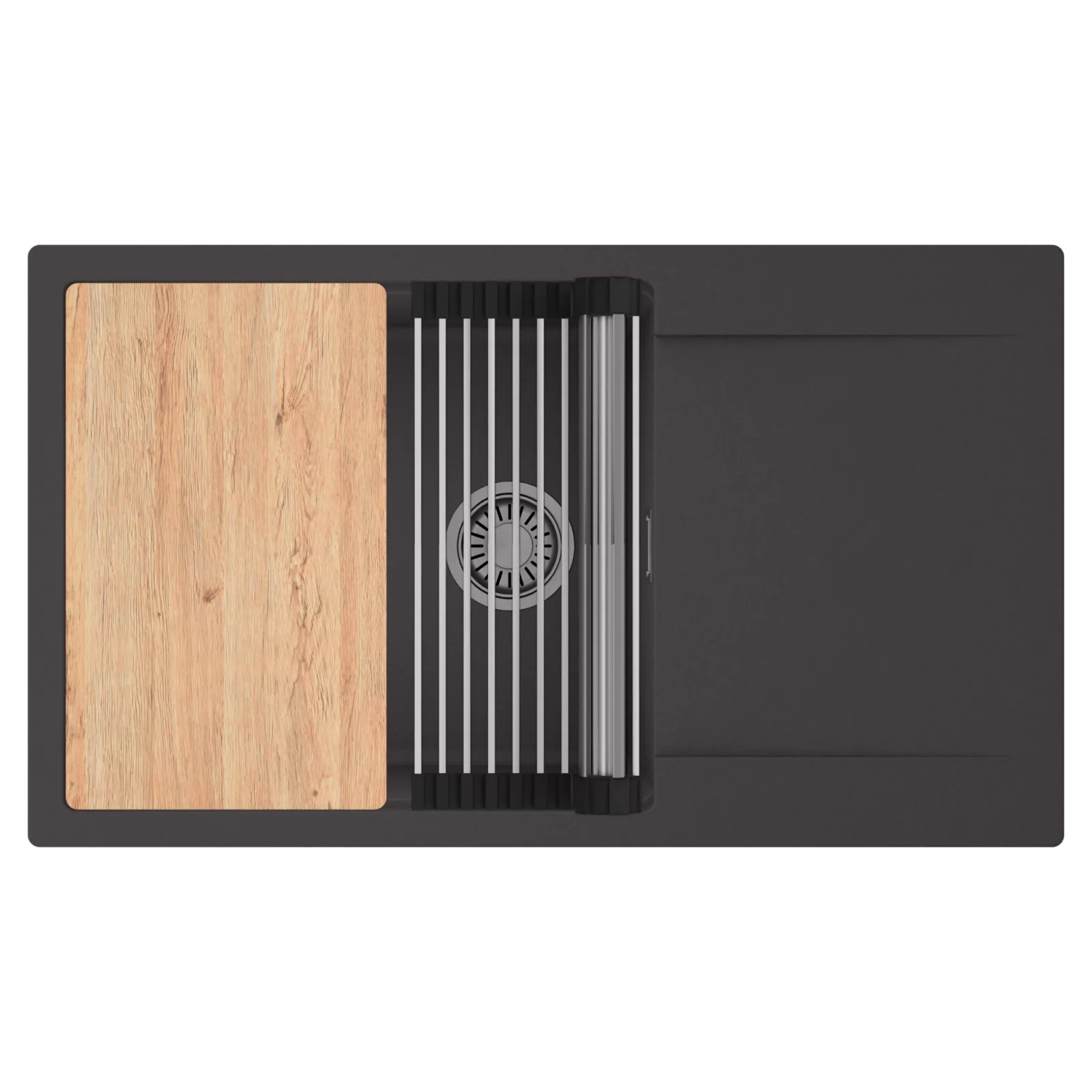 HD Onyx 86-XL egymedencés mosogatótálca szett, vágódeszkával és csepegtetőráccsal, matt antracit