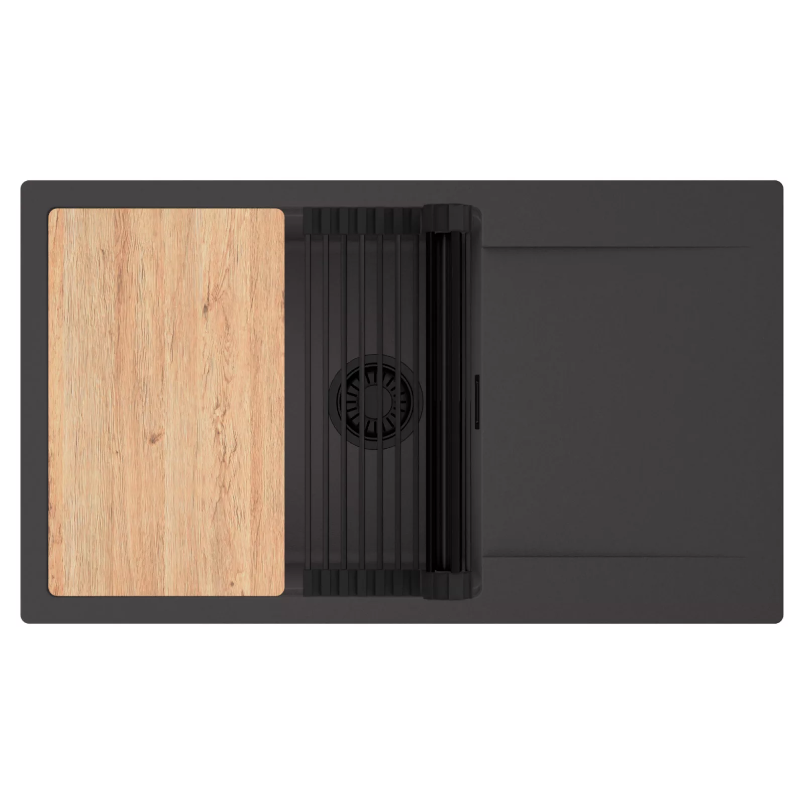 HD Onyx 86-XL egymedencés mosogatótálca szett, vágódeszkával és csepegtetőráccsal, matt antracit