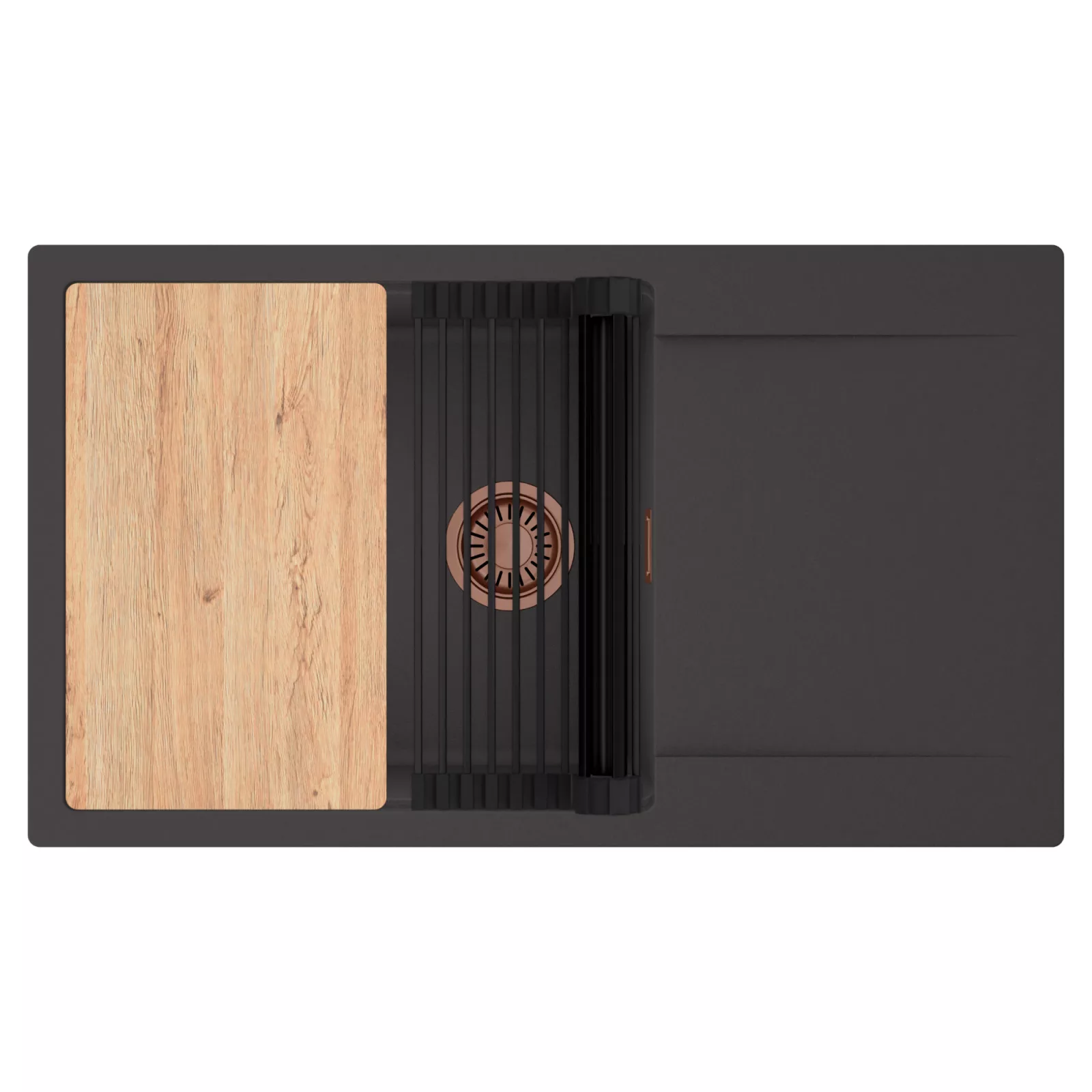 HD Onyx 86-XL egymedencés mosogatótálca szett, vágódeszkával és csepegtetőráccsal, matt antracit