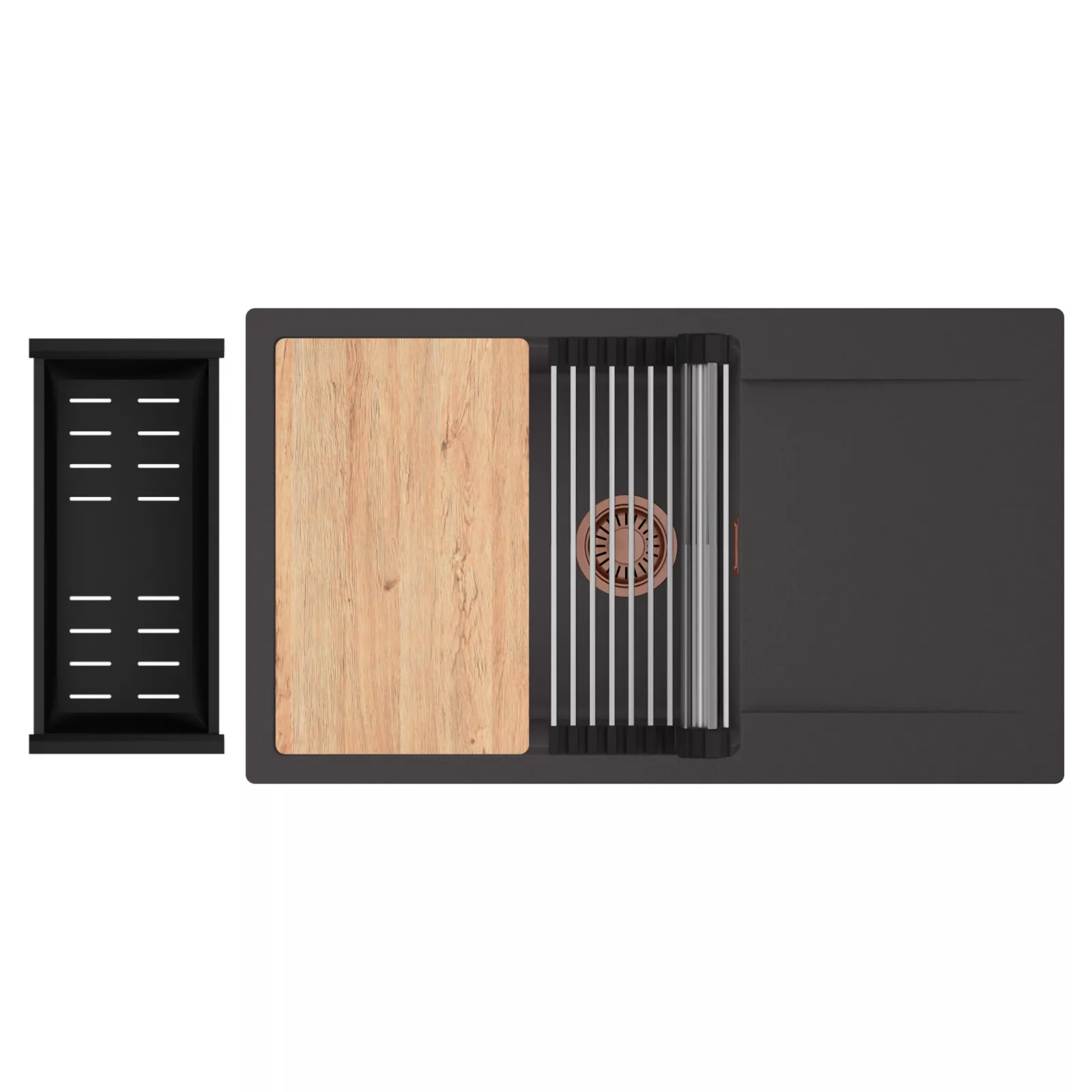 HD Onyx 86-XL egymedencés mosogatótálca szett, vágódeszkával, csepegtetőráccsal és kosárral, matt antracit