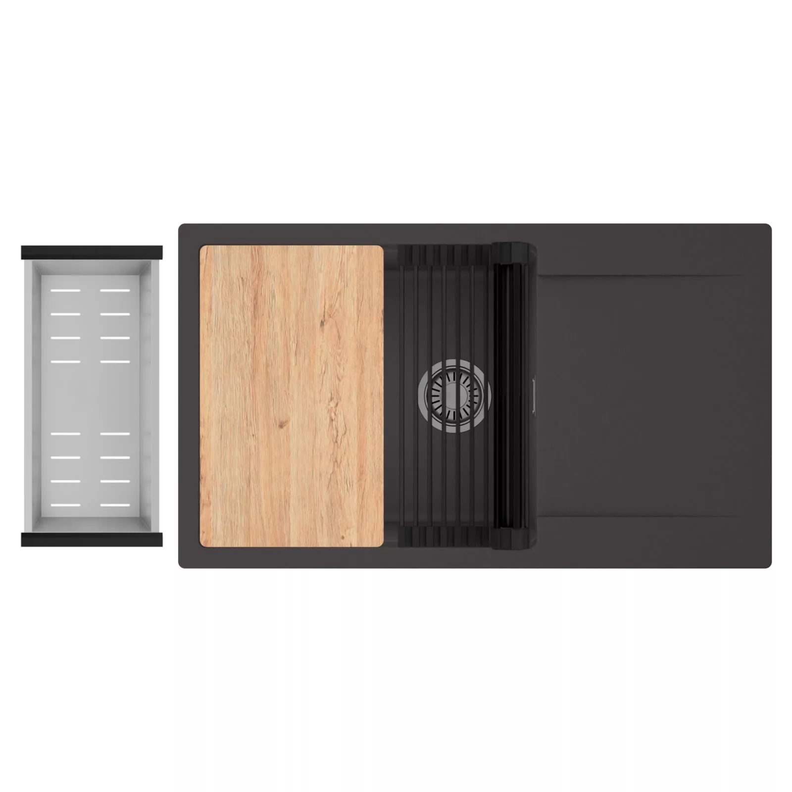 HD Onyx 86-XL egymedencés mosogatótálca szett, vágódeszkával, csepegtetőráccsal és kosárral, matt antracit