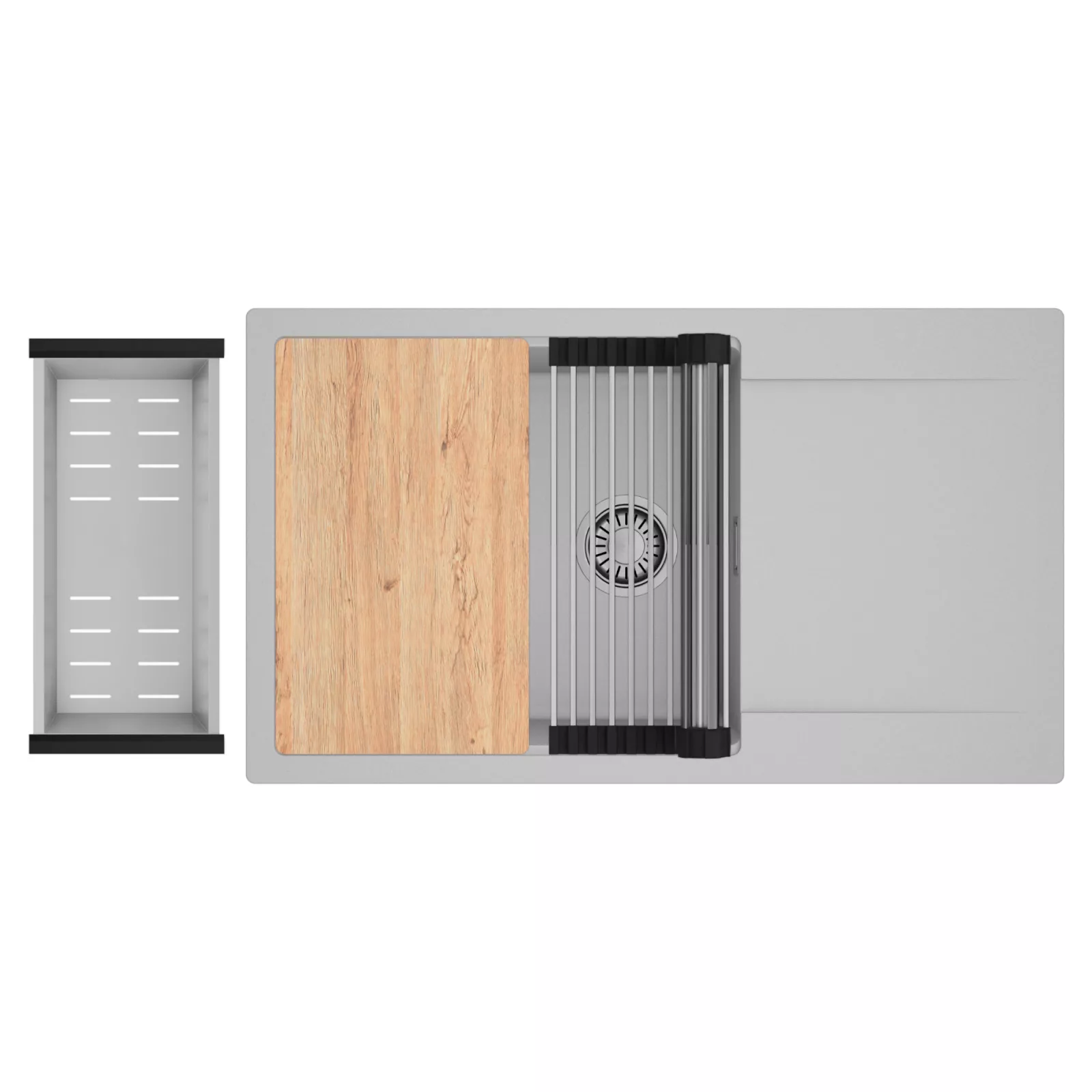 A HomeDepo SmartEdge Többfunkciós Peremrendszer egy intelligensen kialakított peremmegoldás, amely a mosogatót kompakt, mégis teljes értékű konyhai térré alakítja a mindennapok során. A speciális peremkialakítás lehetővé teszi a vágódeszka, a feltekerhető csepegtető rács, a gyümölcsmosó és a csepegtető kosár stabil, biztonságos és kényelmes elhelyezését közvetlenül a mosogató speciális belső peremén. A kiegészítők síkban csúsztathatók és szabadon kombinálhatók, így extra munkafelületet nyersz anélkül, hogy helyet foglalnál a konyhapulton – a mosogató valódi többfunkciós központtá válik.