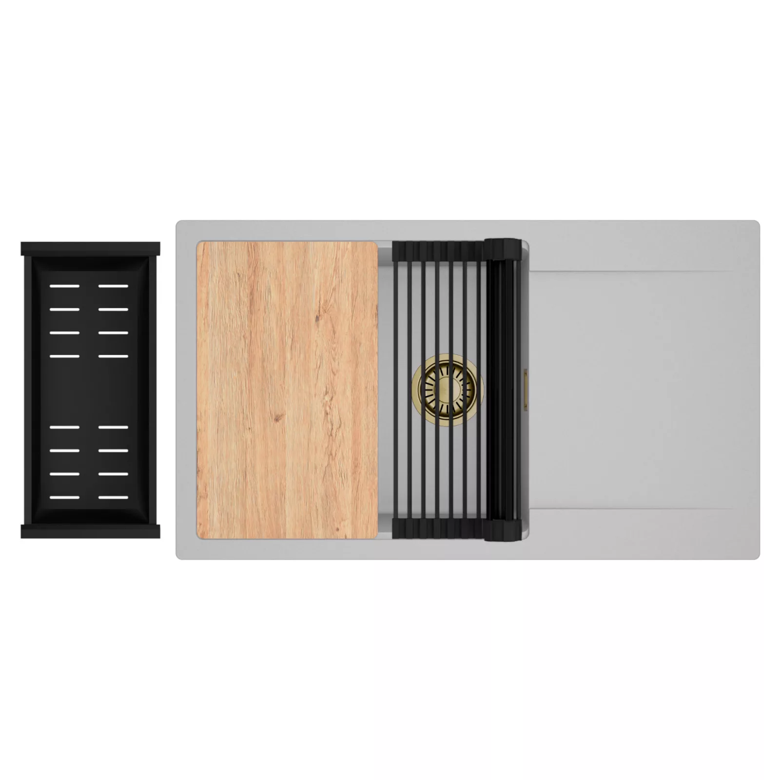 A HomeDepo SmartEdge Többfunkciós Peremrendszer egy intelligensen kialakított peremmegoldás, amely a mosogatót kompakt, mégis teljes értékű konyhai térré alakítja a mindennapok során. A speciális peremkialakítás lehetővé teszi a vágódeszka, a feltekerhető csepegtető rács, a gyümölcsmosó és a csepegtető kosár stabil, biztonságos és kényelmes elhelyezését közvetlenül a mosogató speciális belső peremén. A kiegészítők síkban csúsztathatók és szabadon kombinálhatók, így extra munkafelületet nyersz anélkül, hogy helyet foglalnál a konyhapulton – a mosogató valódi többfunkciós központtá válik.