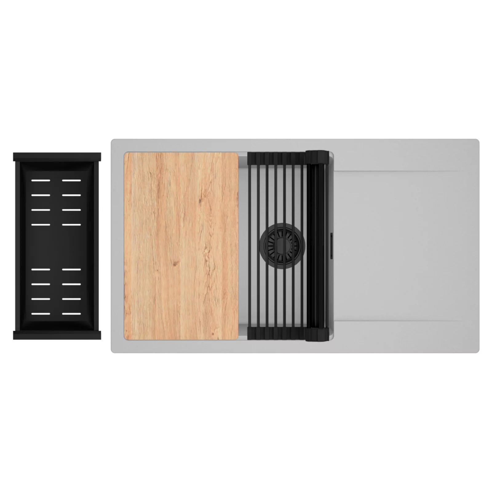 HD Onyx Grey 86-XL egymedencés mosogatótálca szett, vágódeszkával, csepegtetőráccsal és kosárral, alpesi szürke