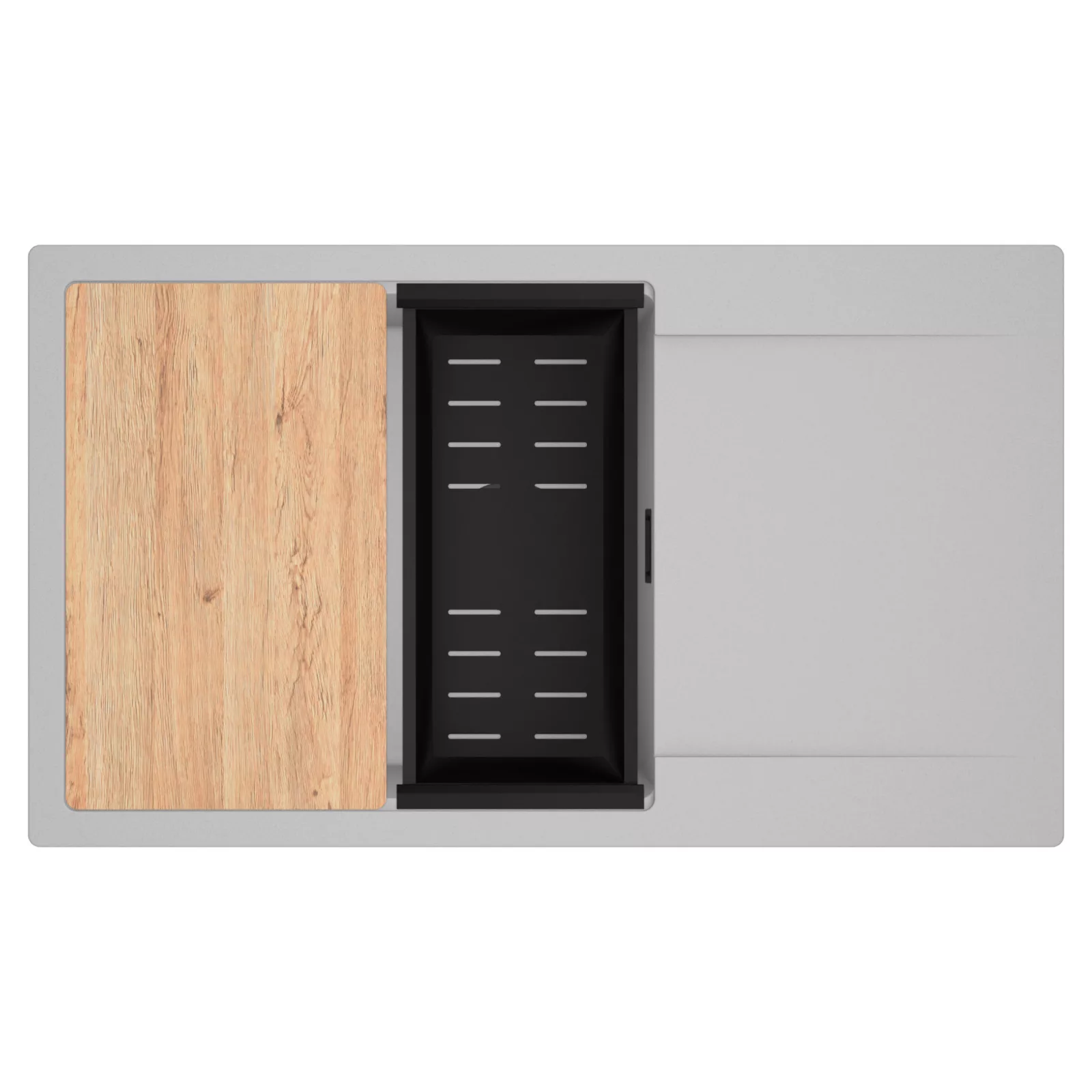 A HomeDepo SmartEdge Többfunkciós Peremrendszer egy intelligensen kialakított peremmegoldás, amely a mosogatót kompakt, mégis teljes értékű konyhai térré alakítja a mindennapok során. A speciális peremkialakítás lehetővé teszi a vágódeszka, a feltekerhető csepegtető rács, a gyümölcsmosó és a csepegtető kosár stabil, biztonságos és kényelmes elhelyezését közvetlenül a mosogató speciális belső peremén. A kiegészítők síkban csúsztathatók és szabadon kombinálhatók, így extra munkafelületet nyersz anélkül, hogy helyet foglalnál a konyhapulton – a mosogató valódi többfunkciós központtá válik.