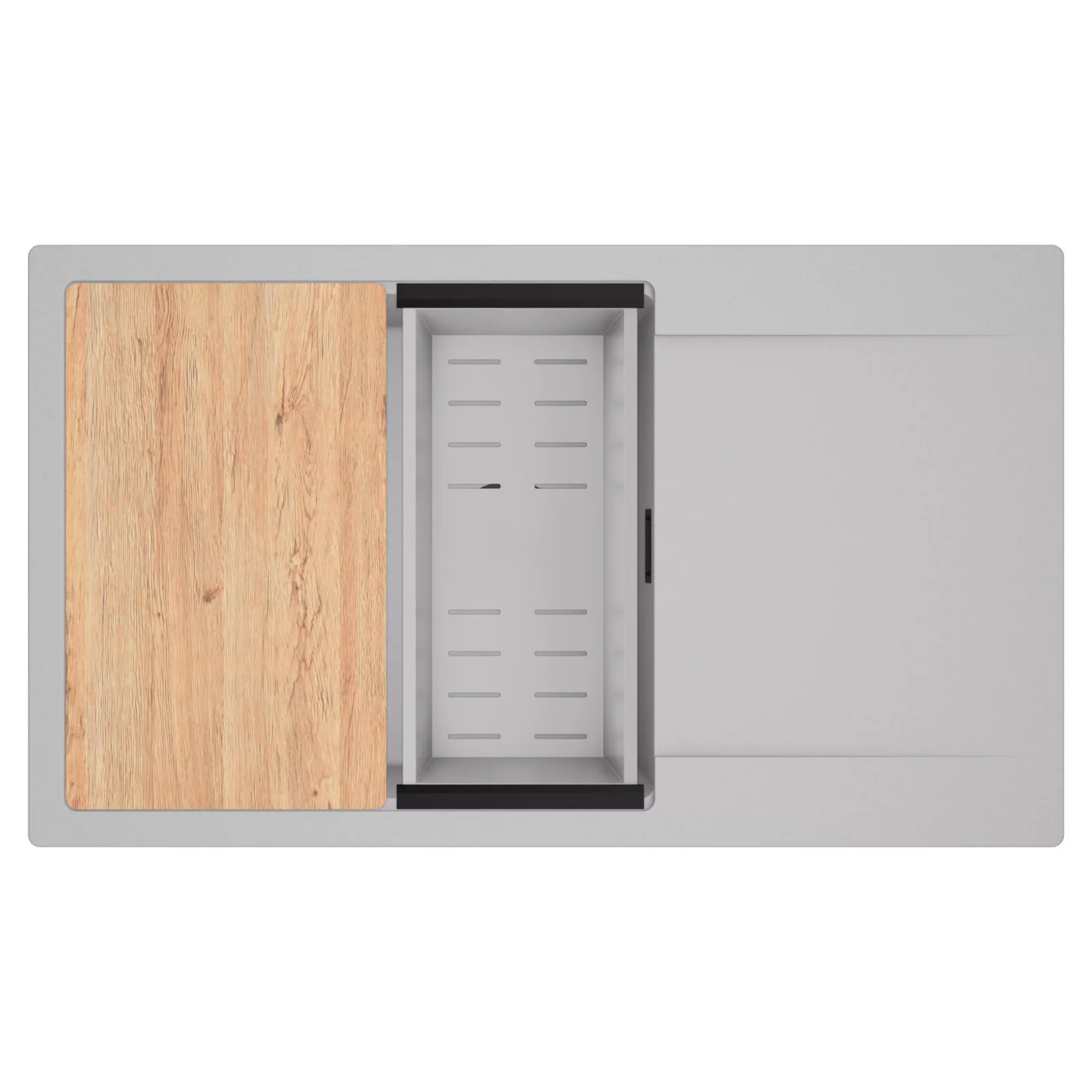 HD Onyx Grey 86-XL egymedencés mosogatótálca szett, vágódeszkával és csepegtetőkosárral, alpesi szürke