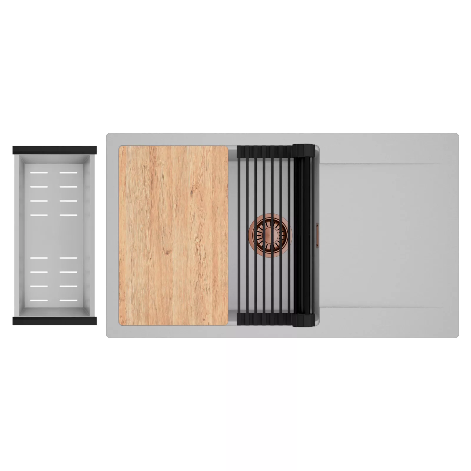 HD Onyx Grey 86-XL egymedencés mosogatótálca szett, vágódeszkával, csepegtetőráccsal és kosárral, alpesi szürke