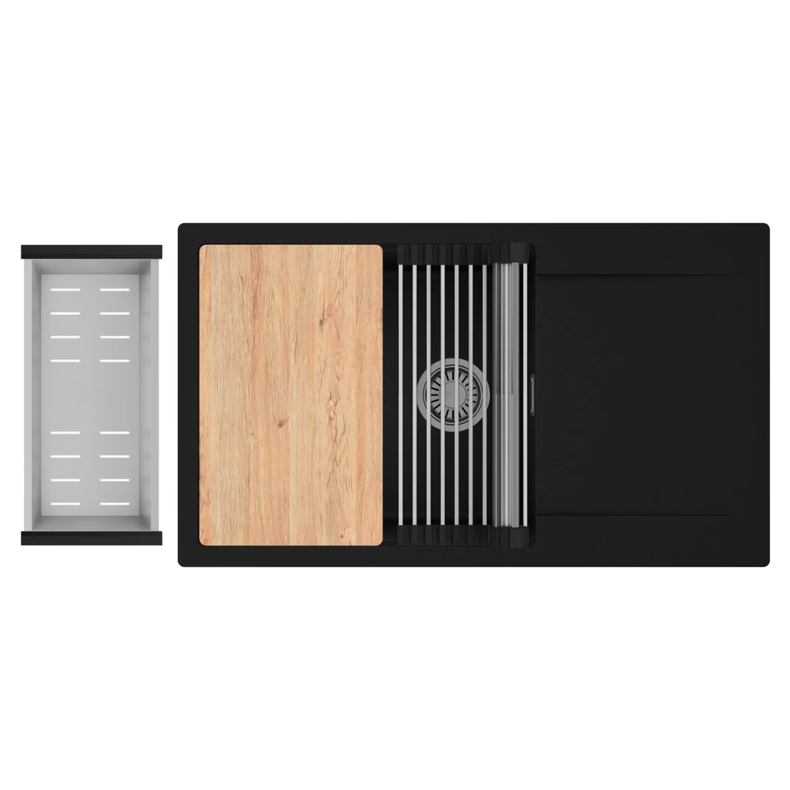 HD Onyx 86-XL egymedencés mosogatótálca szett, vágódeszkával, csepegtetőráccsal és kosárral, matt fekete
