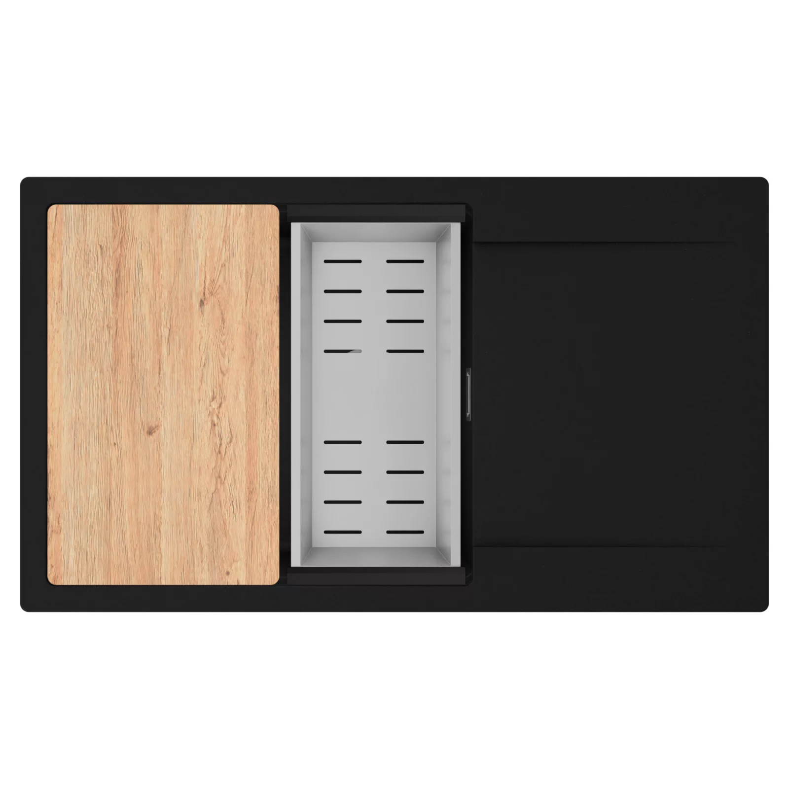 HD Onyx 86-XL egymedencés mosogatótálca szett, vágódeszkával és csepegtetőkosárral, matt fekete