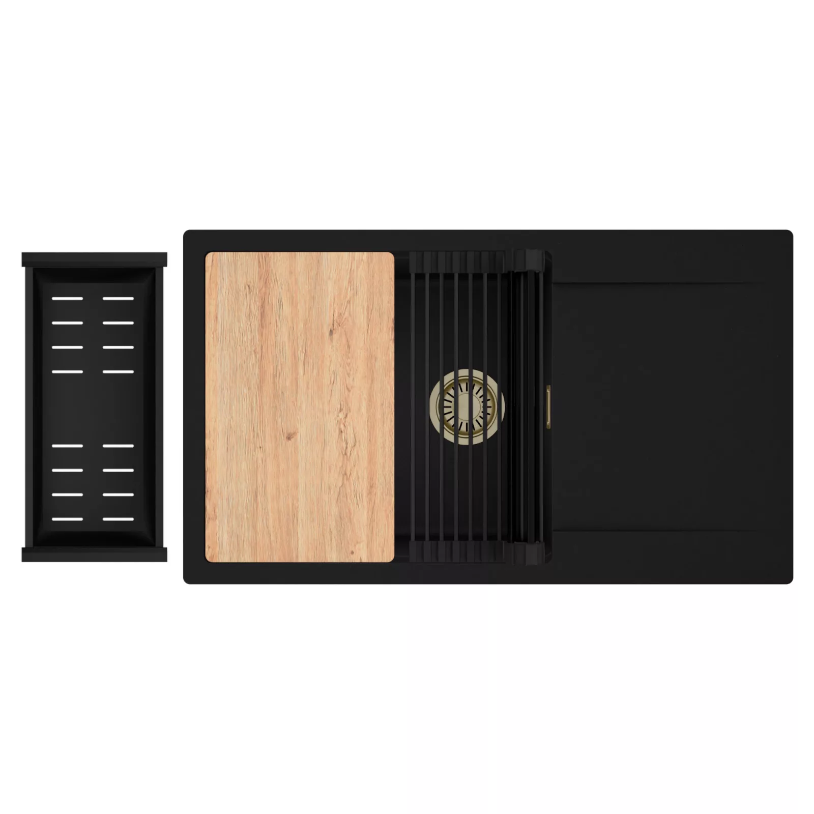 HD Onyx 86-XL egymedencés mosogatótálca szett, vágódeszkával, csepegtetőráccsal és kosárral, matt fekete