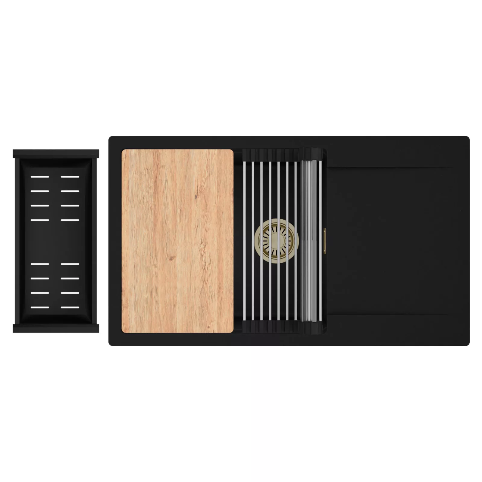 HD Onyx 86-XL egymedencés mosogatótálca szett, vágódeszkával, csepegtetőráccsal és kosárral, matt fekete