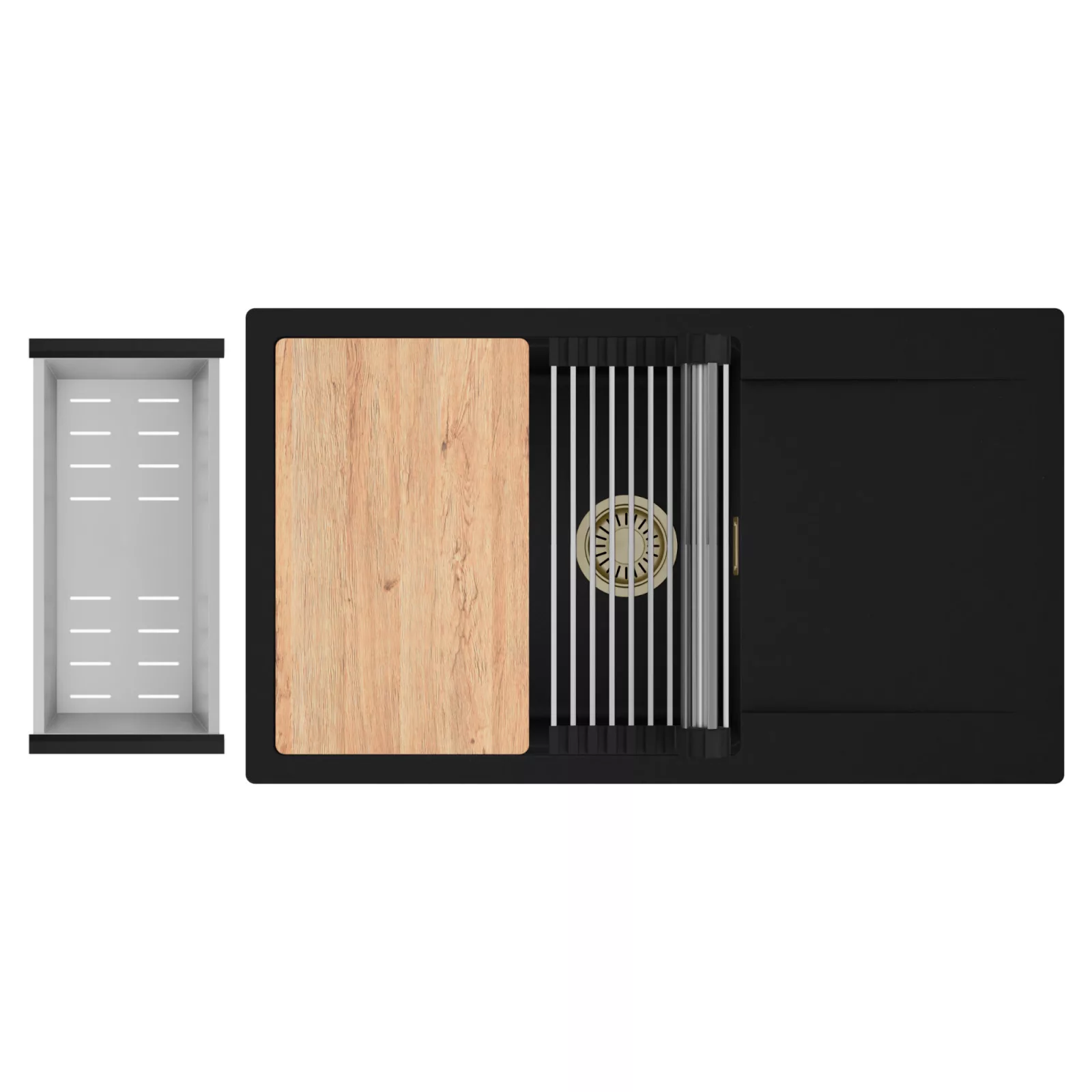 HD Onyx 86-XL egymedencés mosogatótálca szett, vágódeszkával, csepegtetőráccsal és kosárral, matt fekete
