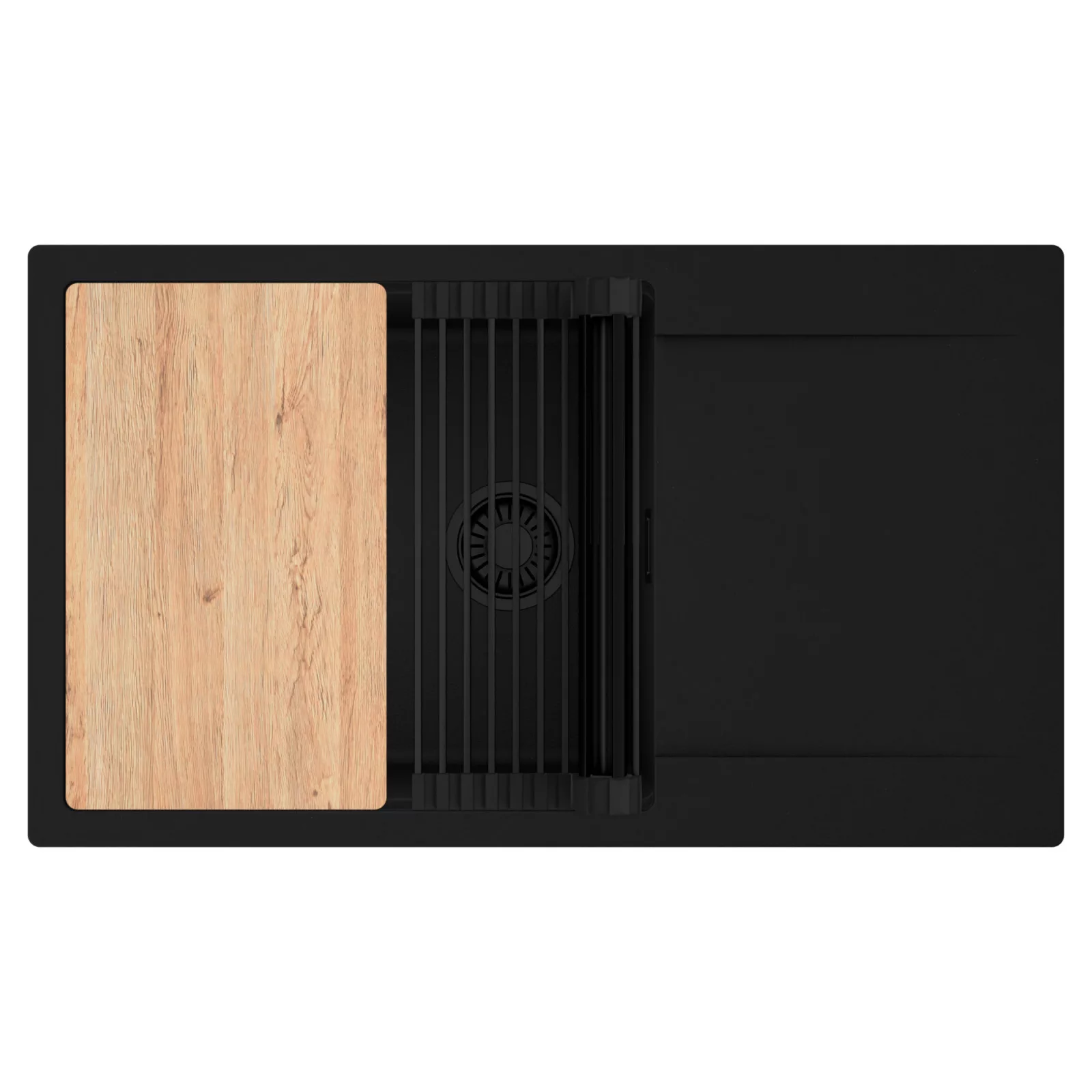 HD Onyx 86-XL egymedencés mosogatótálca szett, vágódeszkával és csepegtetőráccsal, matt fekete