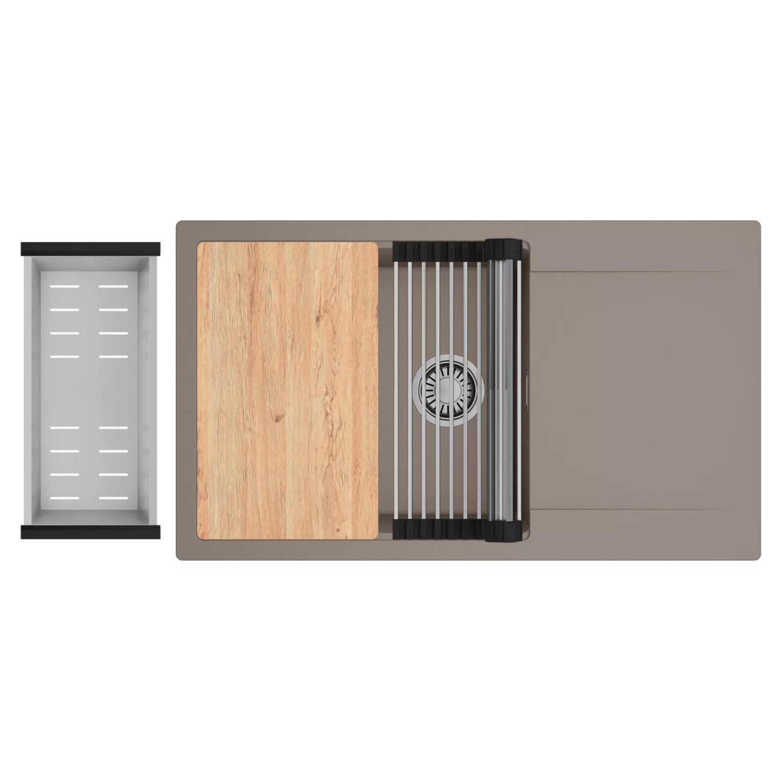 HD Onyx Tortora 86-XL egymedencés mosogatótálca szett, vágódeszkával, csepegtetőráccsal és kosárral, tortora