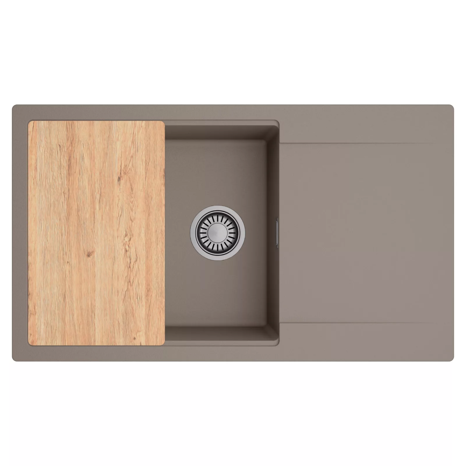 HD Onyx Tortora 86-XL egymedencés mosogatótálca szett, vágódeszkával, tortora