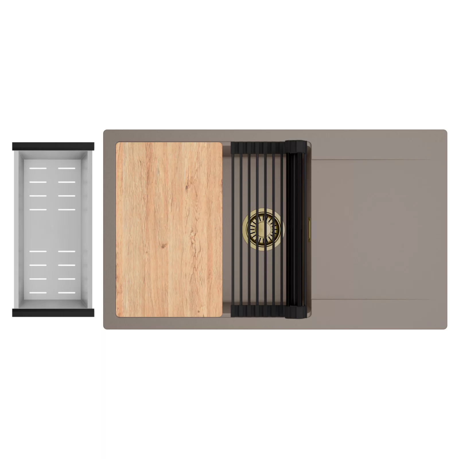 HD Onyx Tortora 86-XL egymedencés mosogatótálca szett, vágódeszkával, csepegtetőráccsal és kosárral, tortora