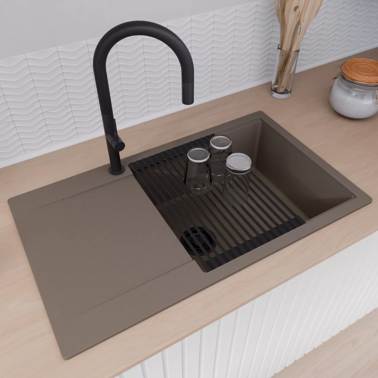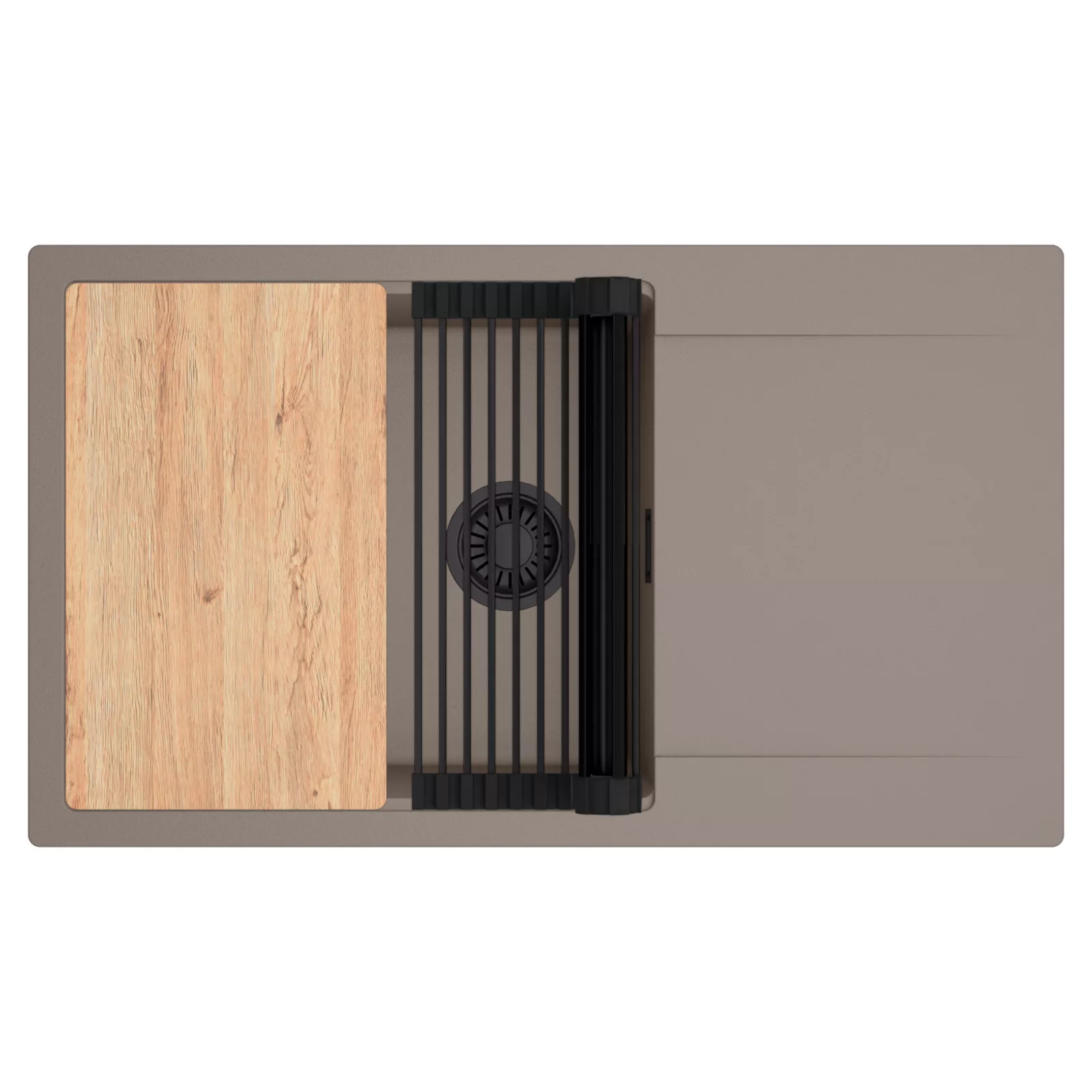 HD Onyx Tortora 86-XL egymedencés mosogatótálca szett, vágódeszkával és csepegtetőráccsal, tortora