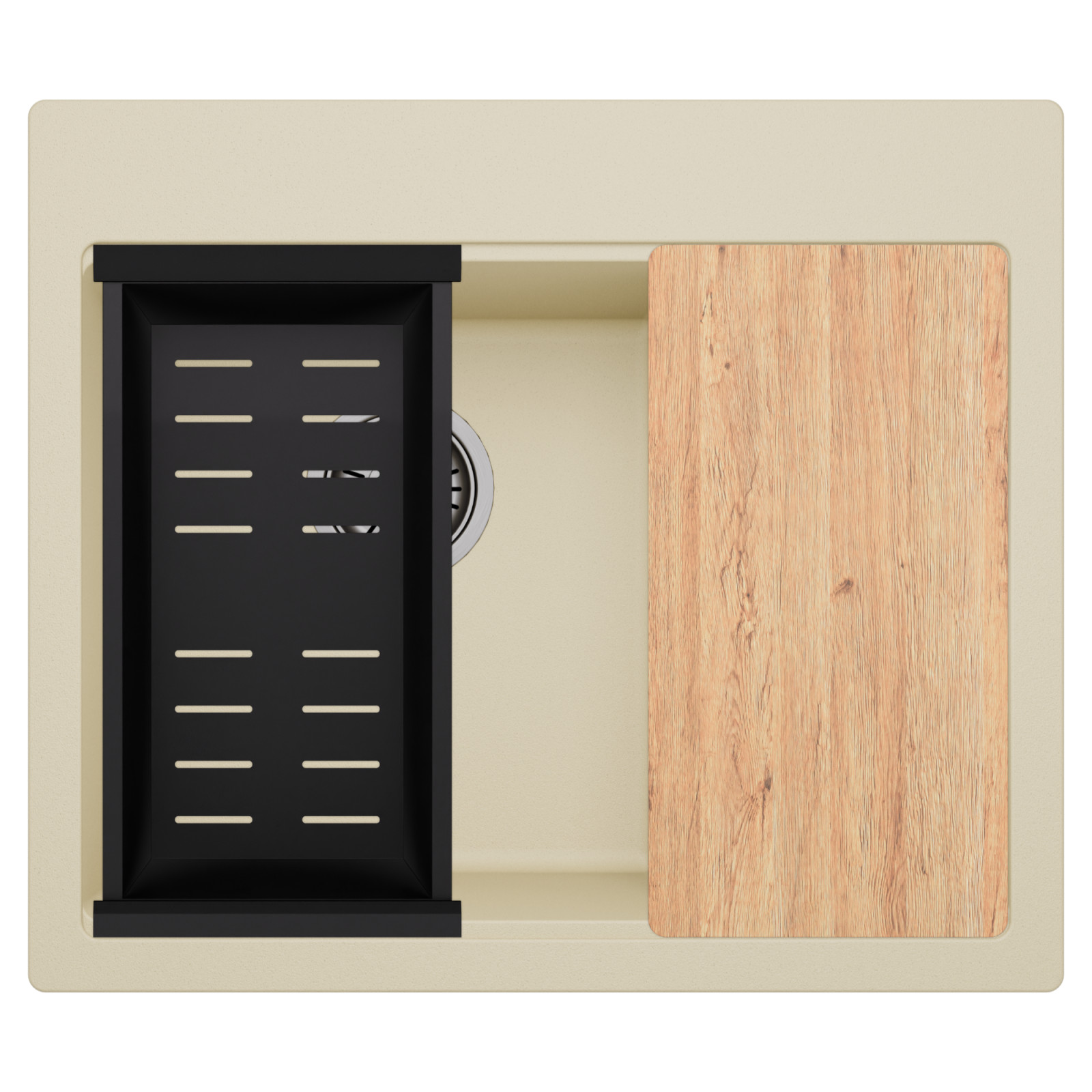 HD Aspen Beige 58 Kétmedencés mosogatótálca szett, vágódeszkával és csepegtetőkosárral, soft bézs