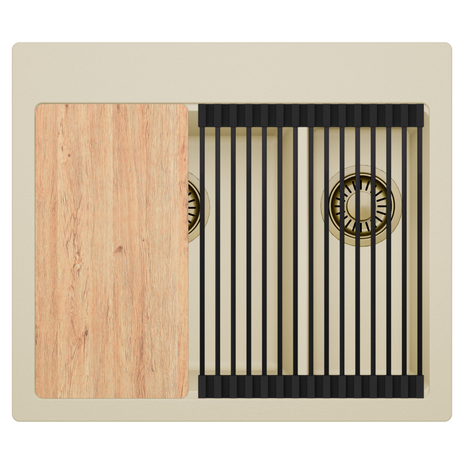 HD Aspen Beige 58 Kétmedencés mosogatótálca szett, vágódeszkával és csepegtetőráccsal, soft bézs