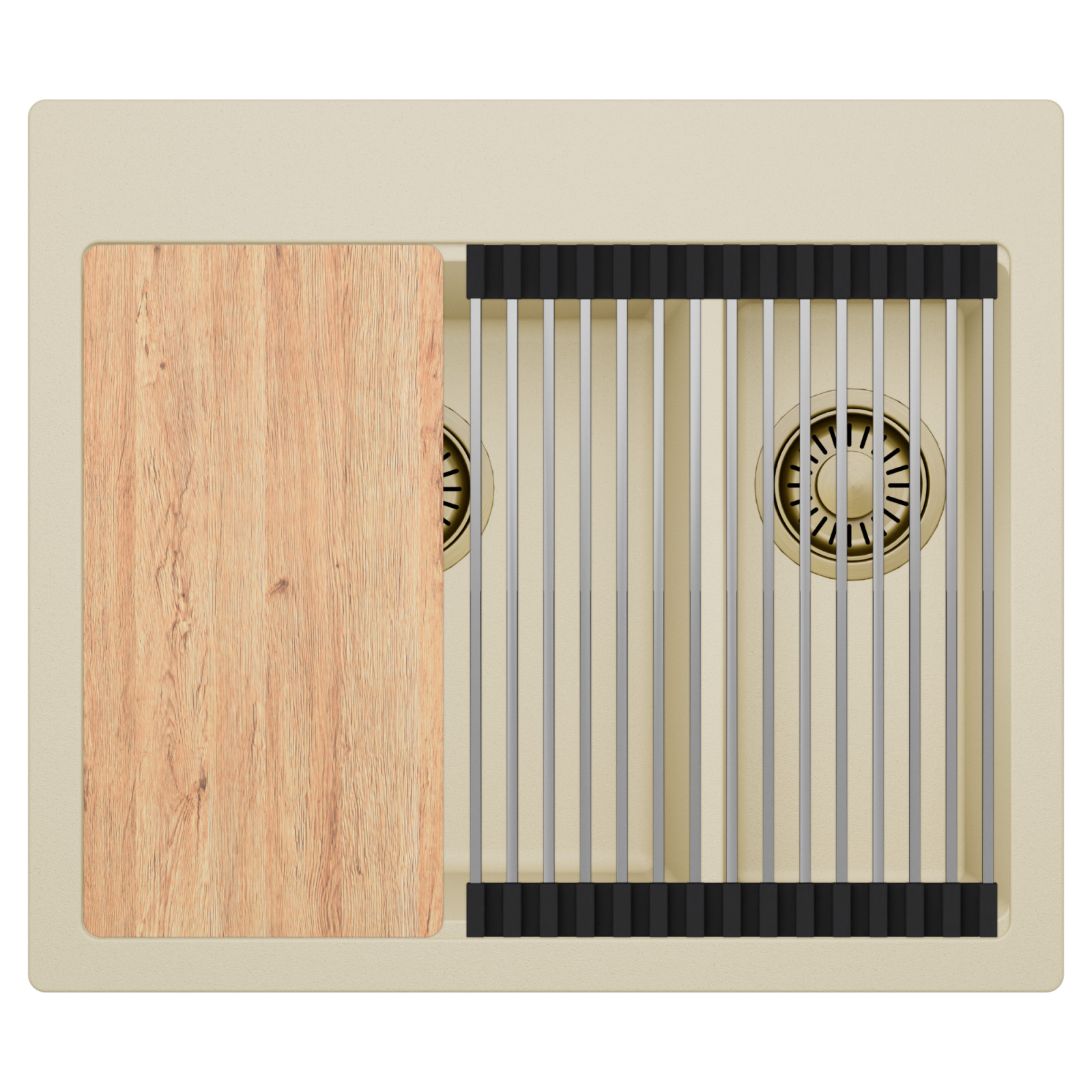 HD Aspen Beige 58 Kétmedencés mosogatótálca szett, vágódeszkával és csepegtetőráccsal, soft bézs