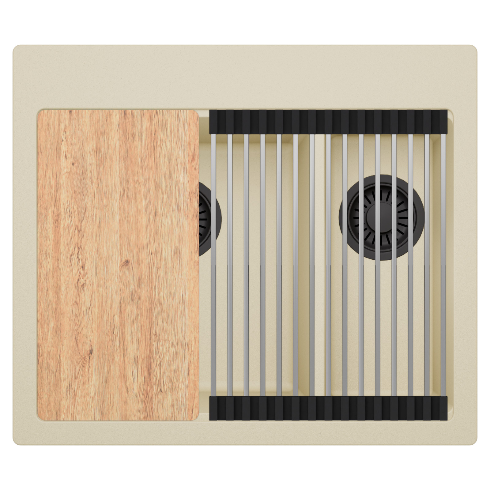 HD Aspen Beige 58 Kétmedencés mosogatótálca szett, vágódeszkával és csepegtetőráccsal, soft bézs