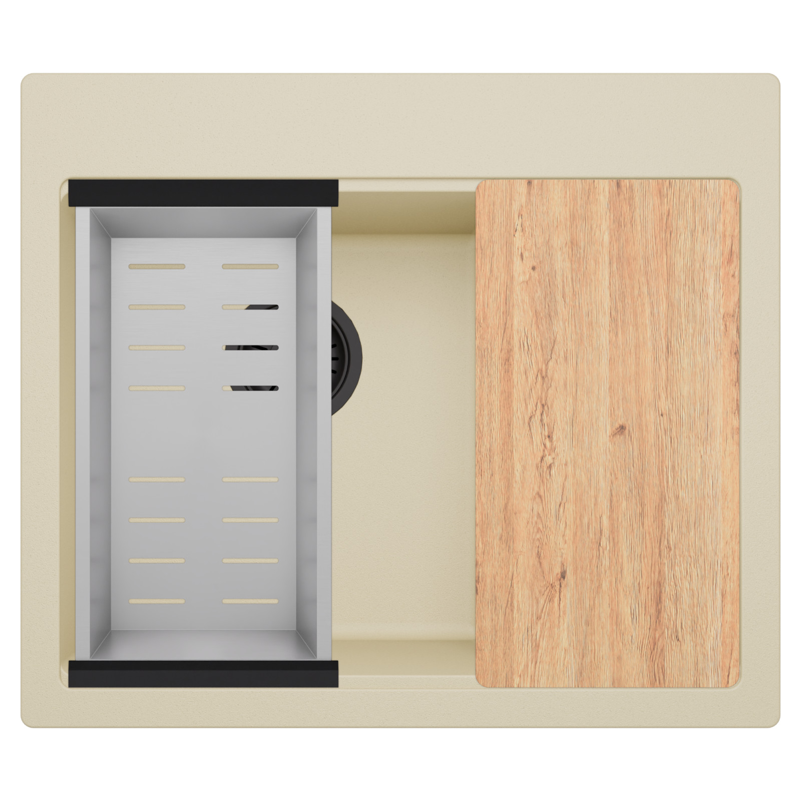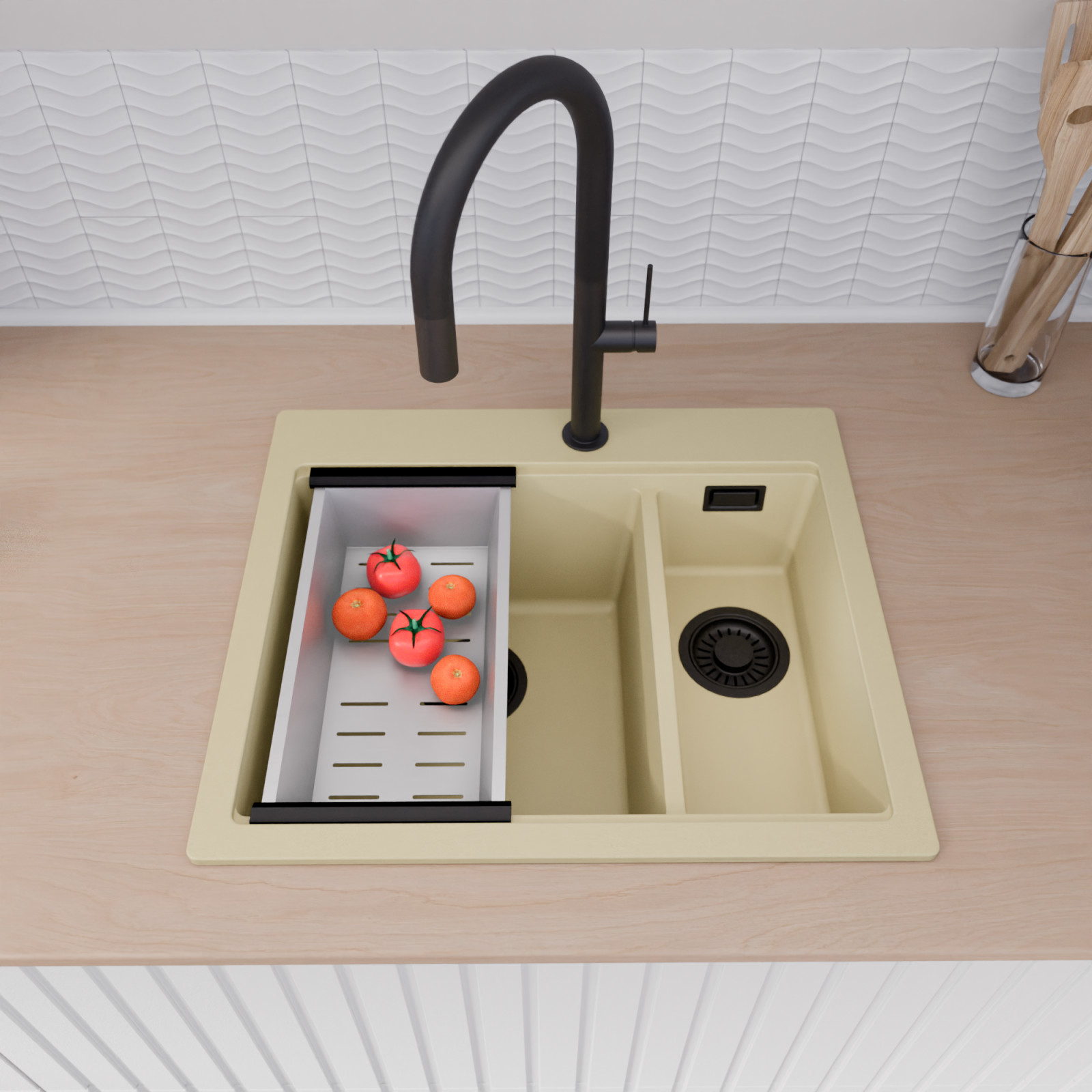 HD Aspen Beige 58 Kétmedencés mosogatótálca szett, vágódeszkával és csepegtetőkosárral, soft bézs