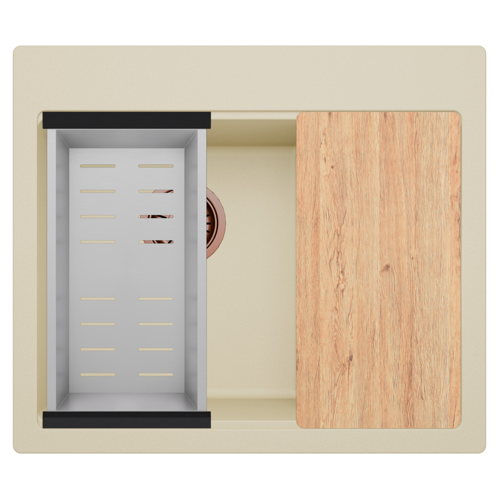 HD Aspen Beige 58 Kétmedencés mosogatótálca szett, vágódeszkával és csepegtetőkosárral, soft bézs